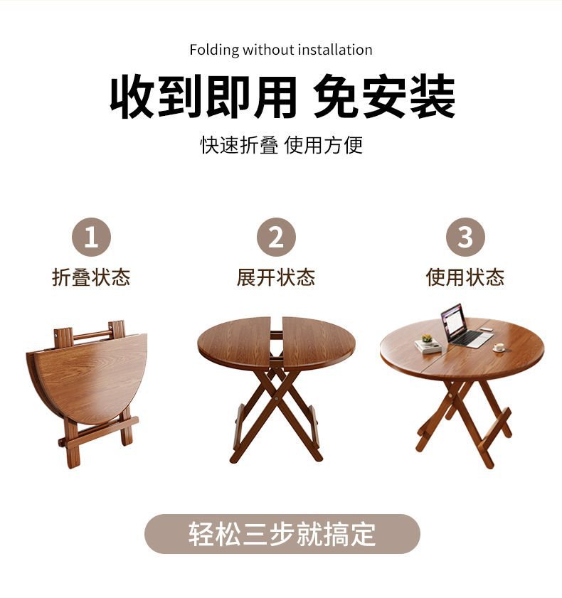 • [설치 불필요, 개봉 후 사용 가능] 80mm 두께의 둥근 접이식 테이블
