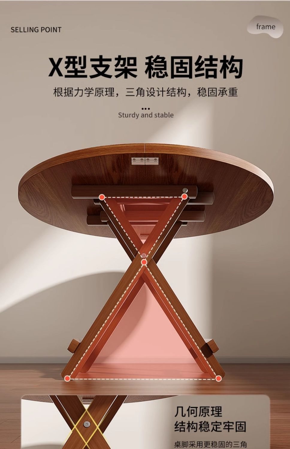 • [설치 불필요, 개봉 후 바로 사용 가능] 100 브라운 두께의 원형 접이식 테이블