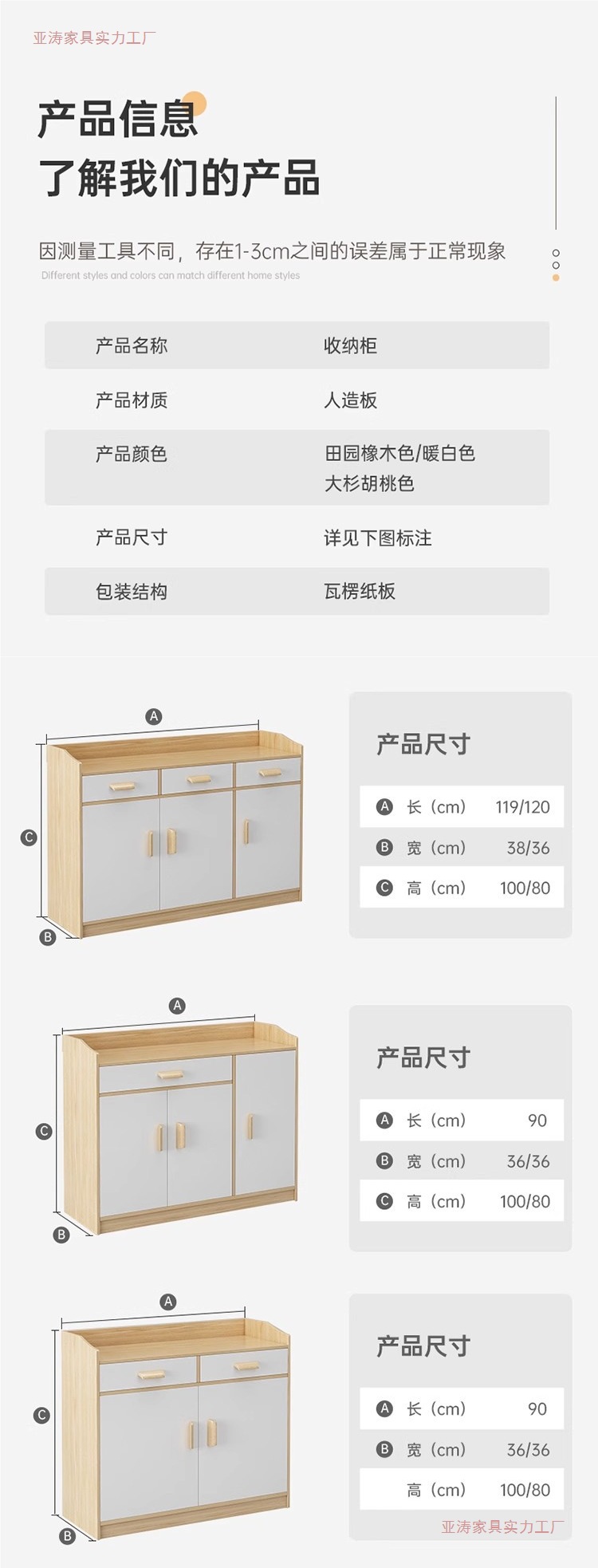 • 【고품질 보드 | 3개의 문과 2개의 수납공간] 전원 참나무 색상 50*24*80CM