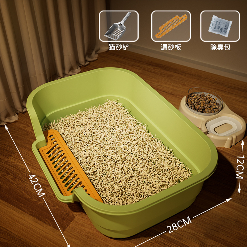 애완 동물 용품 고양이 쓰레기 상자 반 밀폐형 개방형 통기성 냄새없는 고양이 화장실 대형 공간 안티 스플래시 고양이 쓰레기 상자