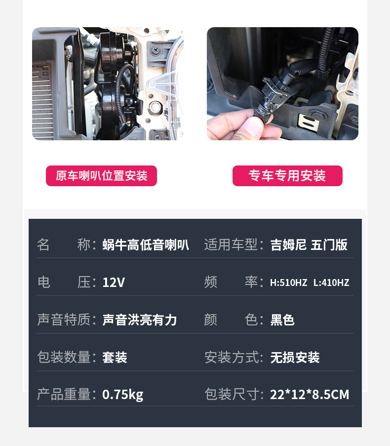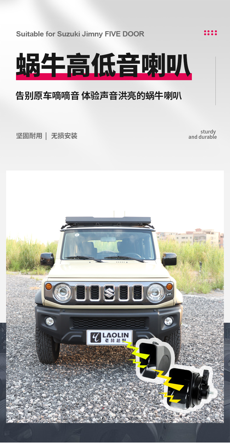 2023-2025 새로운 5 도어 버전에 적합 Jimny 수정 된 경적 방수 달팽이 고음 및 저음 스피커