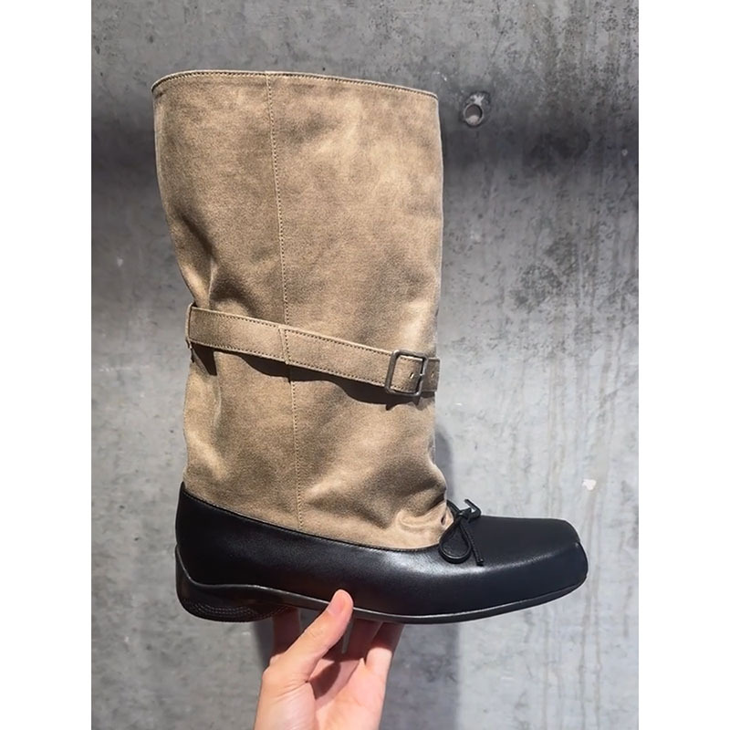 양가죽 버전~레트로 리본 스웨이드 디자인 발레 숏부츠 여성 벨트 버클 두꺼운 밑창 슈즈 나이트부츠스토어 가기
