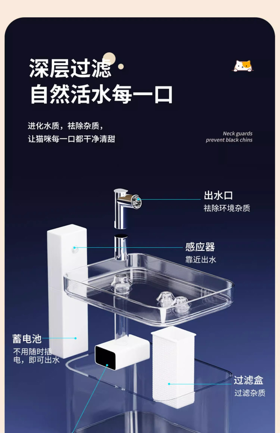 고양이 물 디스펜서, 플러그 아웃, 무선 유도, 애완 동물 식수, 자체 흐름 고양이 물 디스펜서, 충전식 강아지 스마트스토어 가기
