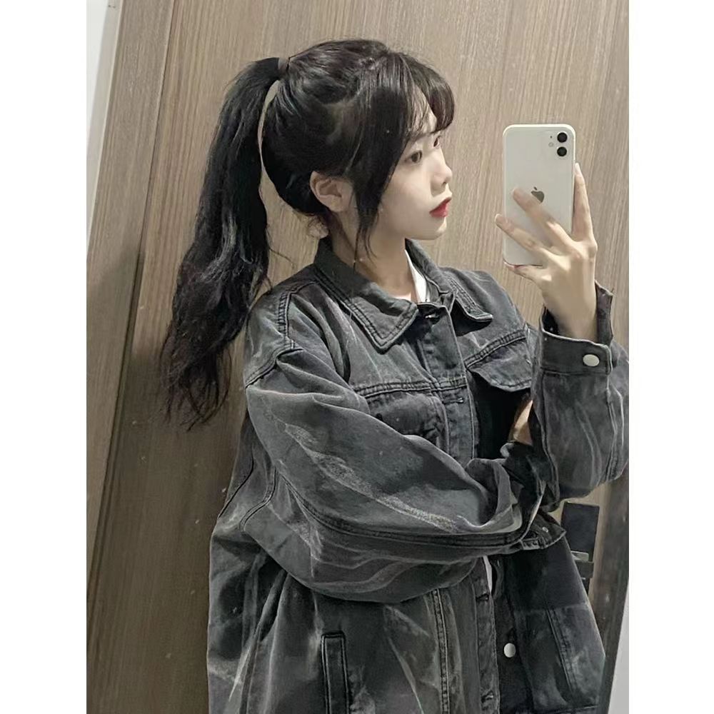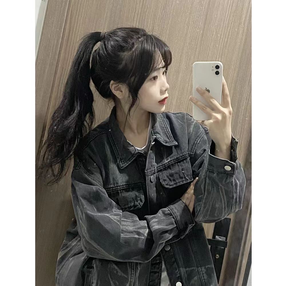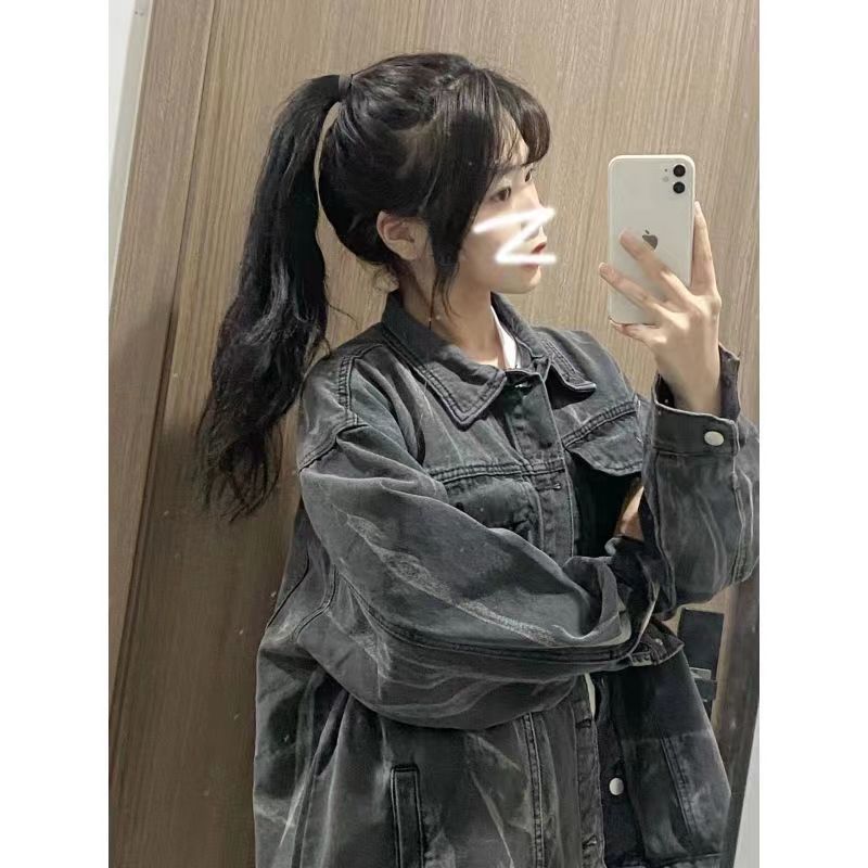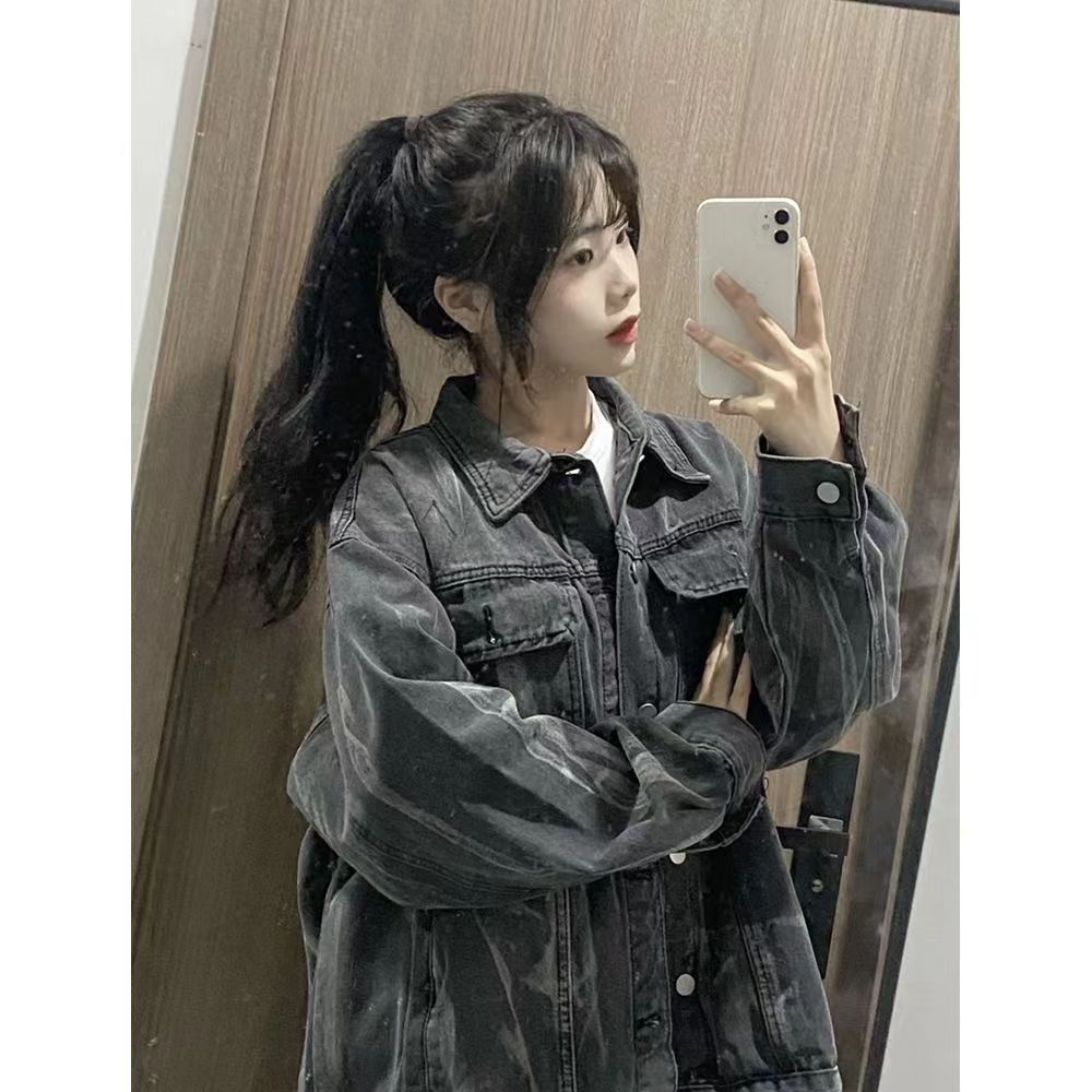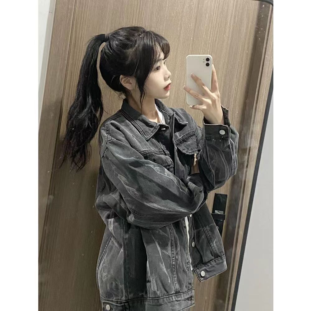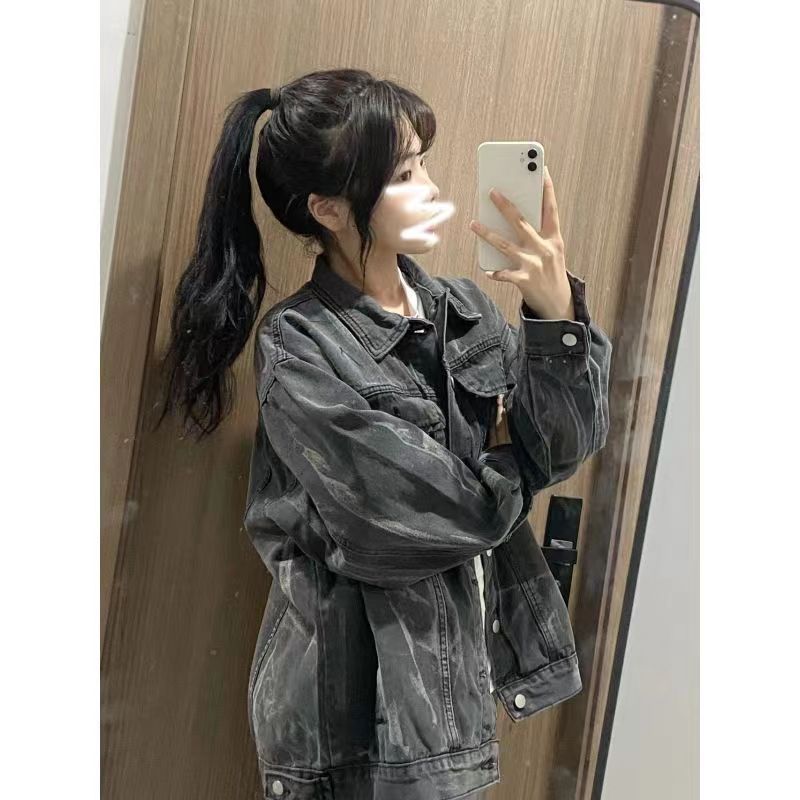2025 새로운 가을, 겨울 멋진 재킷 패션 스트리트 타이 염색 데님 재킷 여성 bf 게으른 스타일 한국 스타일 루즈 탑스토어 가기