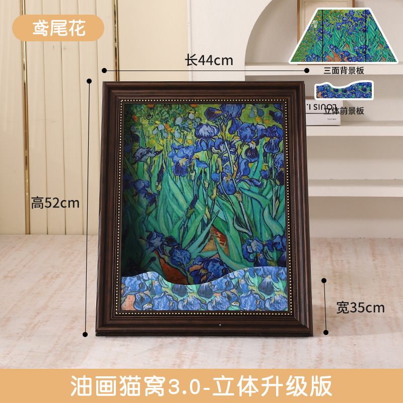 창의적인 고양이 둥지 입체 그림 교체 가능한 유화 모나리자 유화 고양이 둥지 고양이 스크래치 보드 사진 프레임 입체 효과스토어 가기