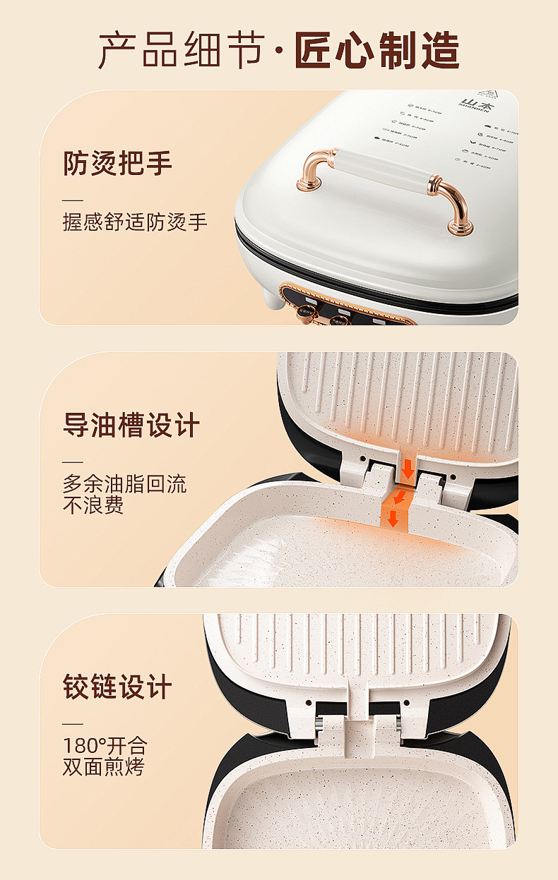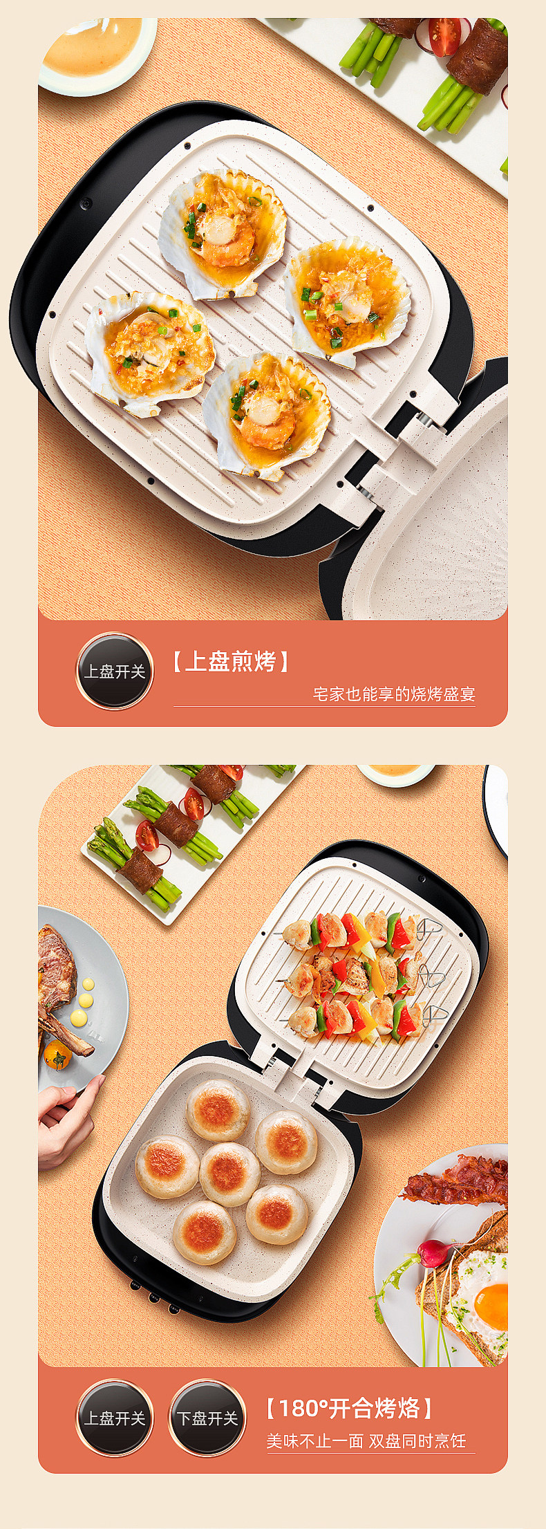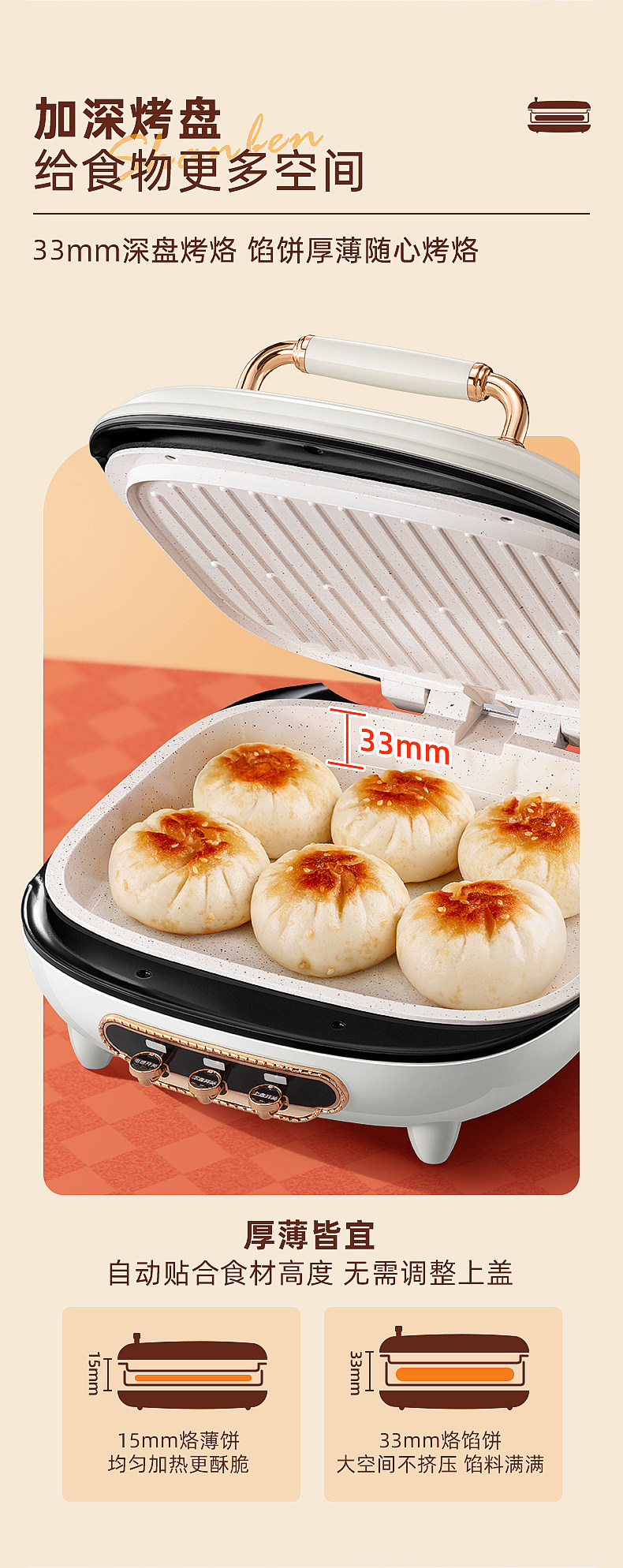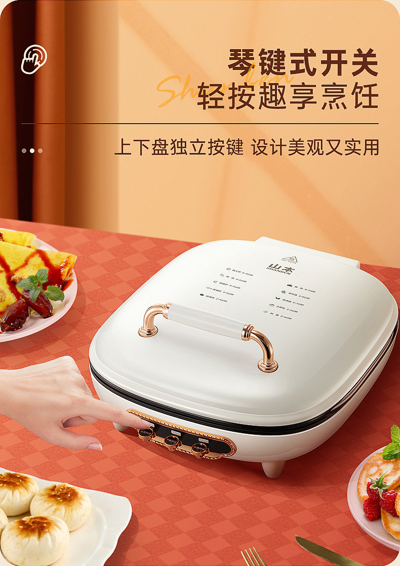 야마모토 전기 베이킹 팬 양면 가열 33mm 깊은 접시 전기 베이킹 샌드위치 아침 식사 기계 S-EL798