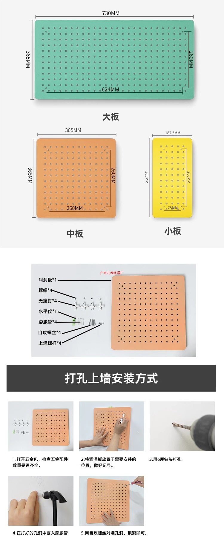 • 액세서리는 당사의 천공 보드에만 적합합니다.