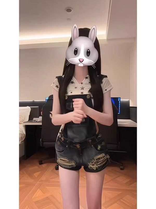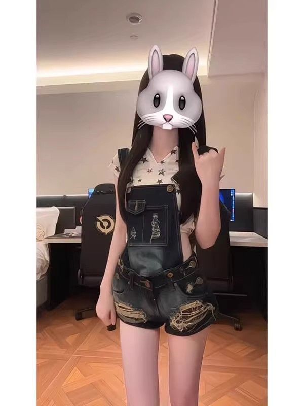 2025 여름 아메리칸 핫걸 워싱 디스트레스드 빈티지 찢어진 데님 오버올 여성 슬리밍 힙 커버 반바지 트렌디스토어 가기