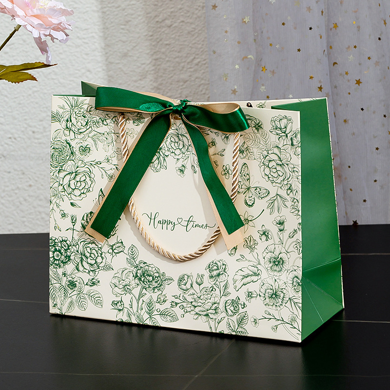 • 녹색 꽃 - 녹색 금 리본, 흰색 판지, 중간 크기 25*20*10cm