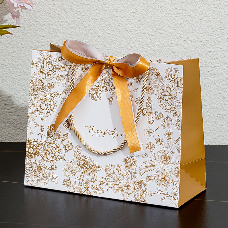 • 황금 꽃 - 금색과 은색 리본, 흰색 판지, 중간 크기 25*20*10cm