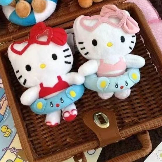 만화 수영 반지 키티 펜던트 봉제 인형 귀여운 새로운 헬로 키티 학교 가방 펜던트 키 체인 인형스토어 가기