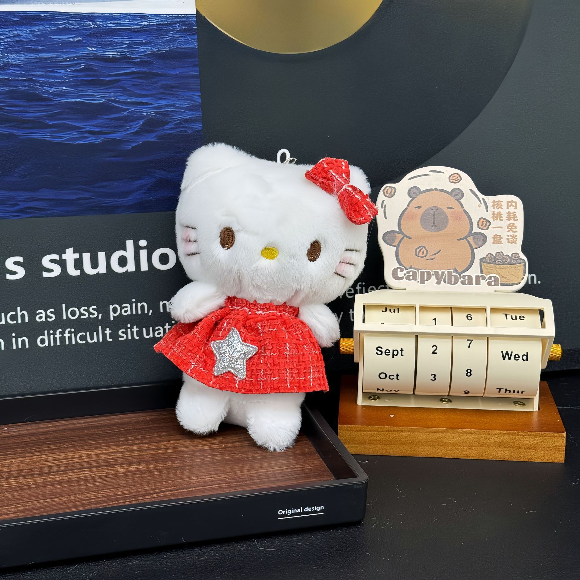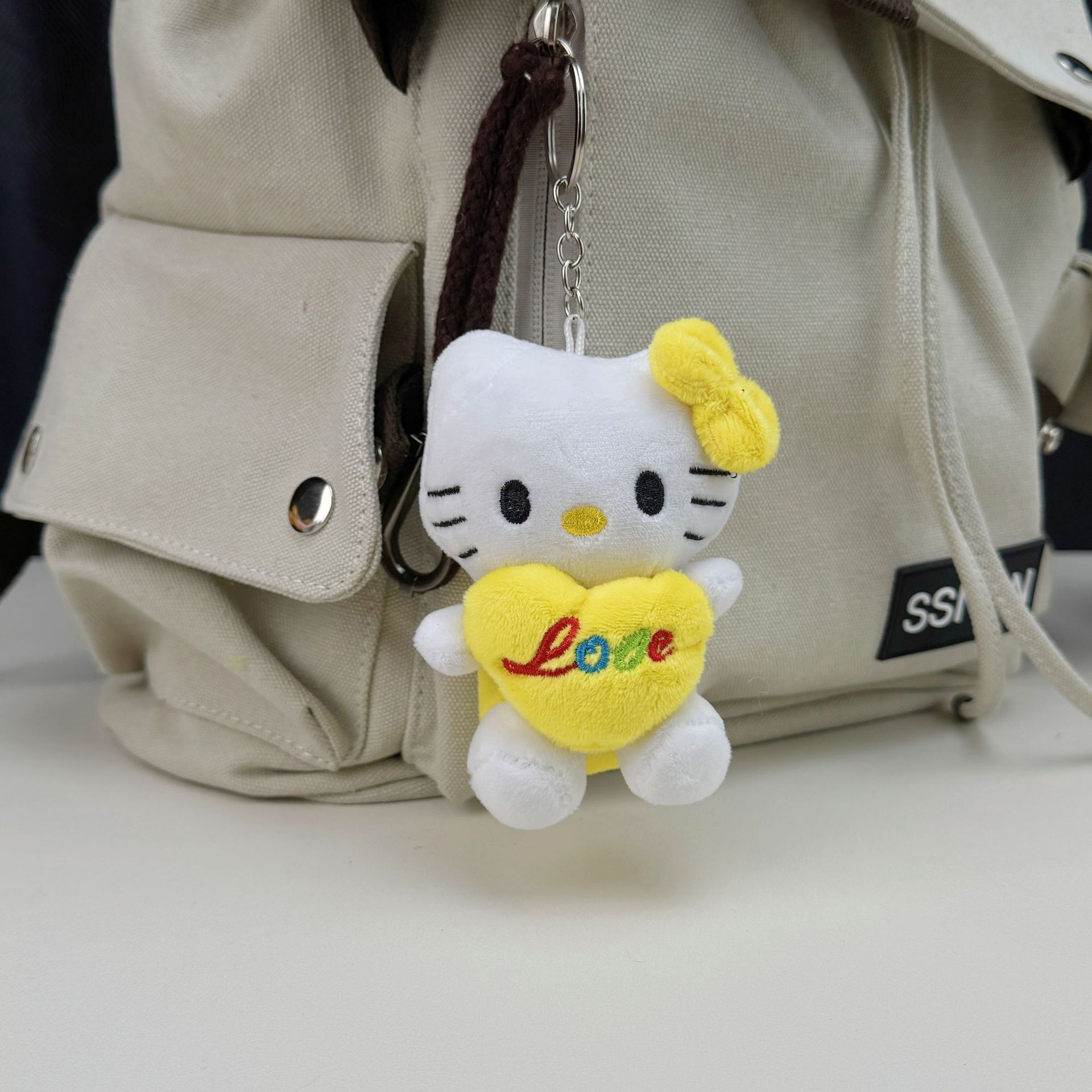 만화 수영 반지 키티 펜던트 봉제 인형 귀여운 새로운 헬로 키티 학교 가방 펜던트 키 체인 인형