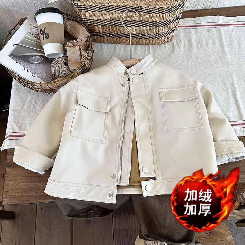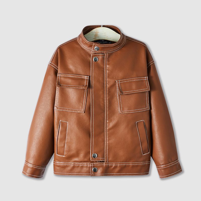 어린이 가죽 자켓 흰색 라인 스탠드 칼라 봄, 가을 소년 소년 패션쇼 PU 가죽 자켓 가을 탑 유행 스타일스토어 가기