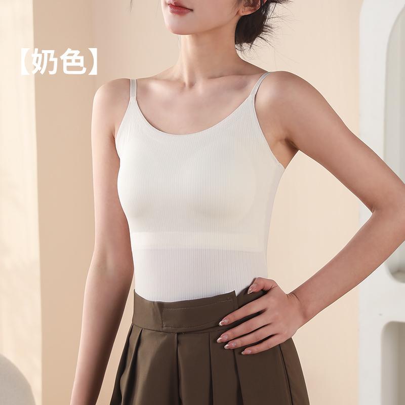 6666 고정컵 아이스 실크 얇은 심리스 뷰티 백 속옷 브라 일체형 얇은 바텀 셔츠