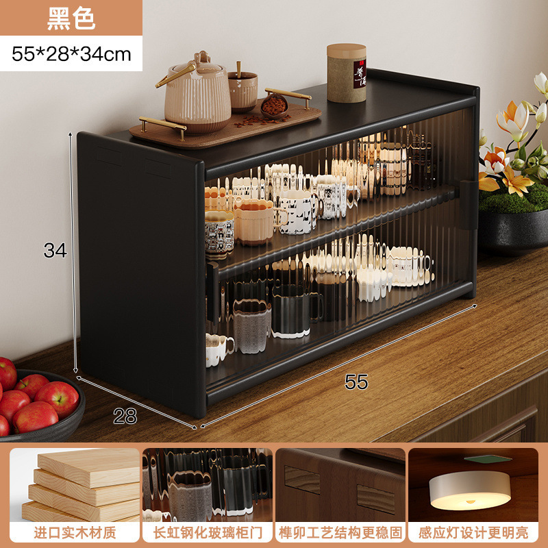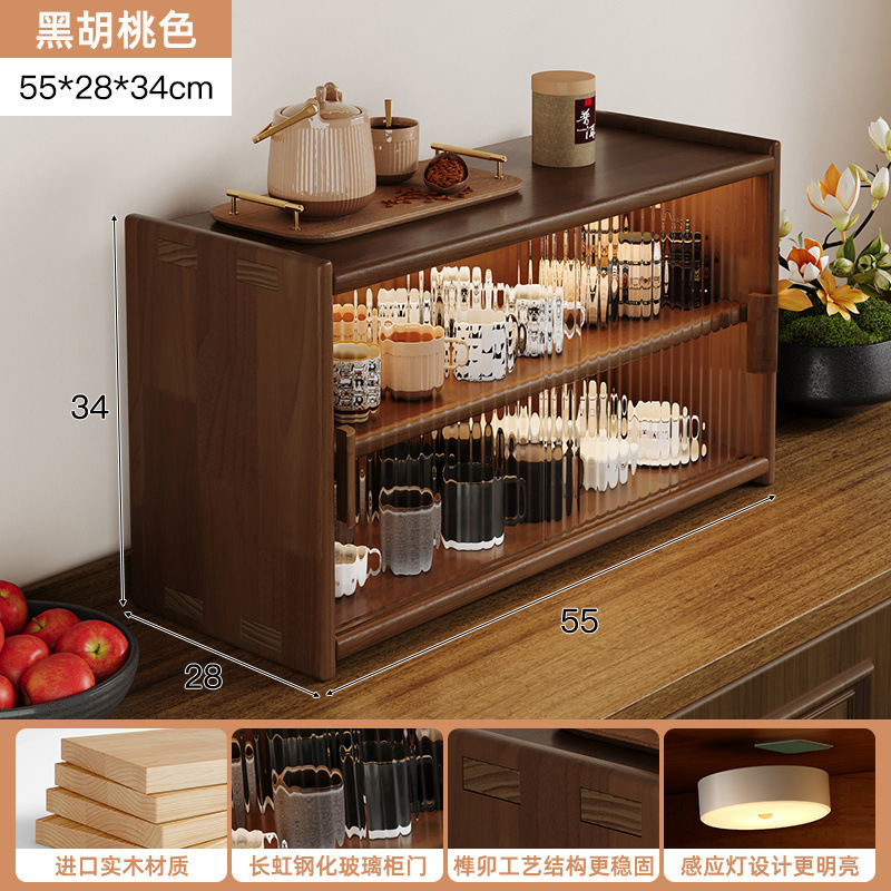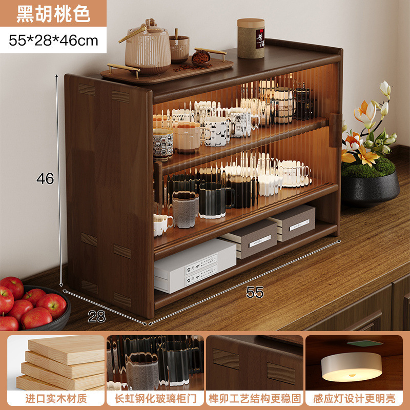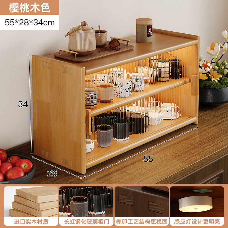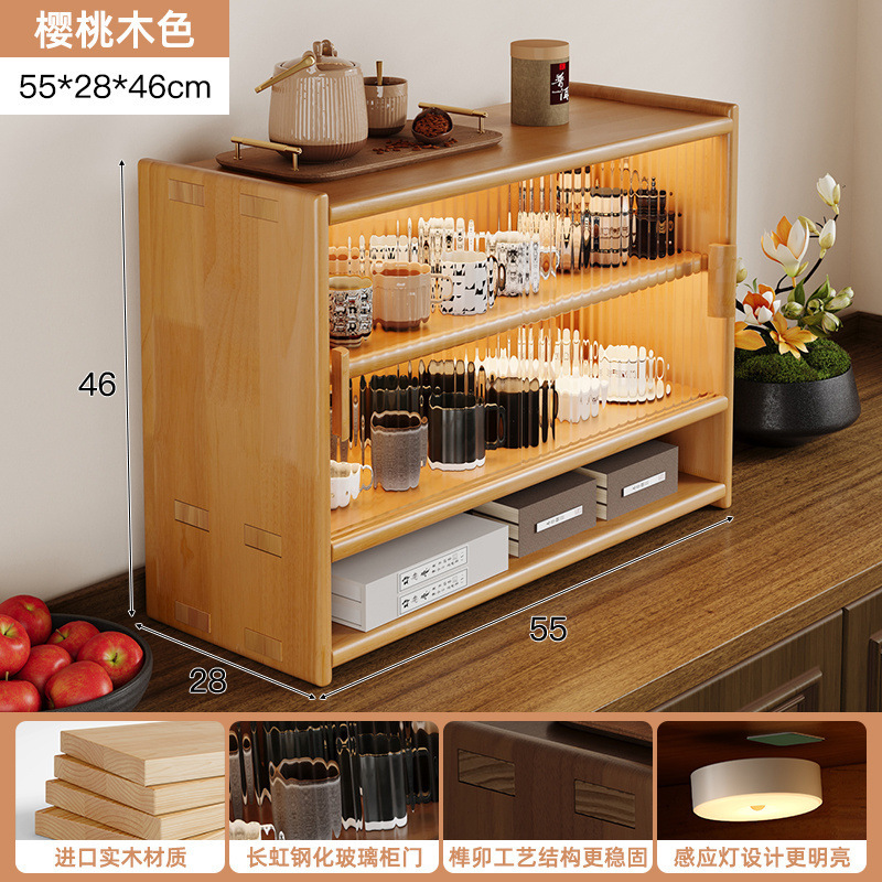 단단한 나무 테이블 수납 캐비닛 방진 수납 선반 컵 홀더 유리 캐비닛 도어가있는 작은 사이드 캐비닛 다층 차 세트 수납 선반스토어 가기