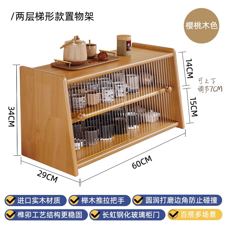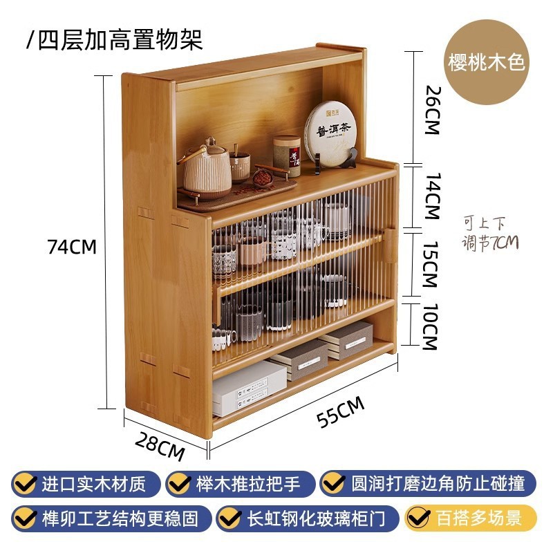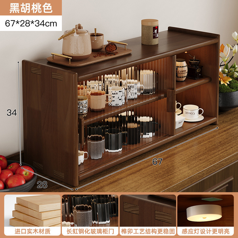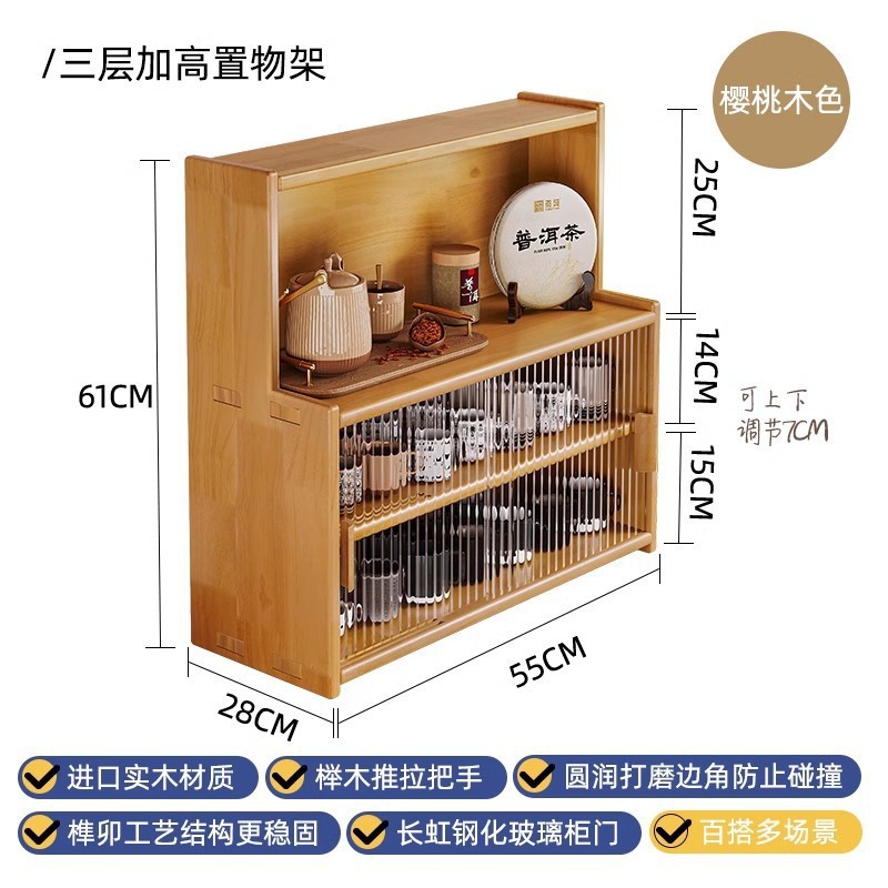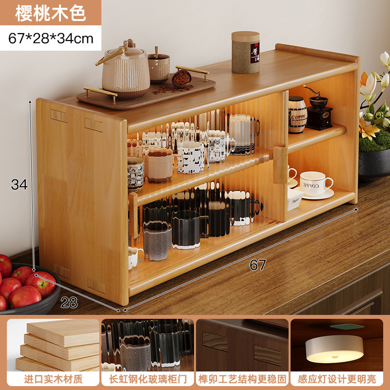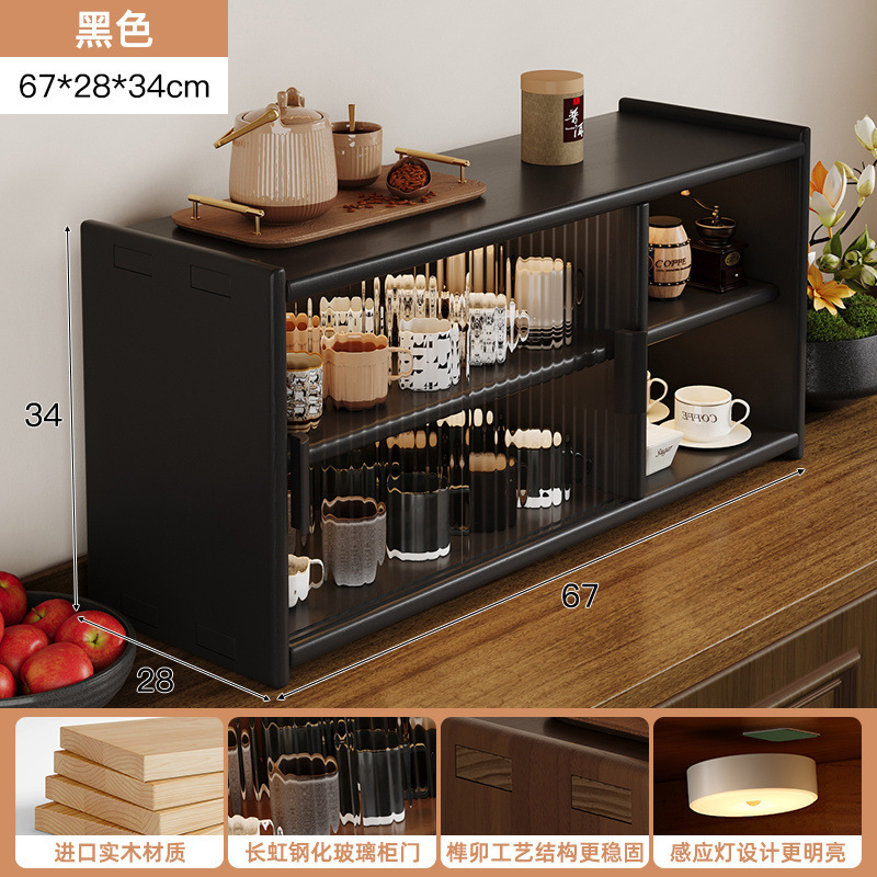 단단한 나무 테이블 수납 캐비닛 방진 수납 선반 컵 홀더 유리 캐비닛 도어가있는 작은 사이드 캐비닛 다층 차 세트 수납 선반스토어 가기