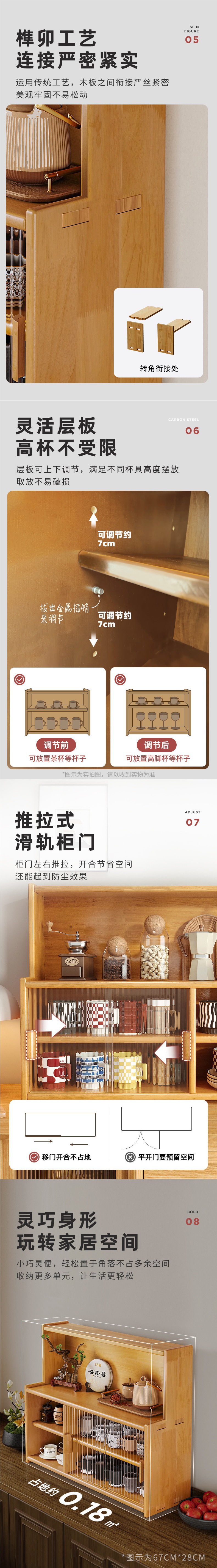 단단한 나무 테이블 수납 캐비닛 방진 수납 선반 컵 홀더 유리 캐비닛 도어가있는 작은 사이드 캐비닛 다층 차 세트 수납 선반