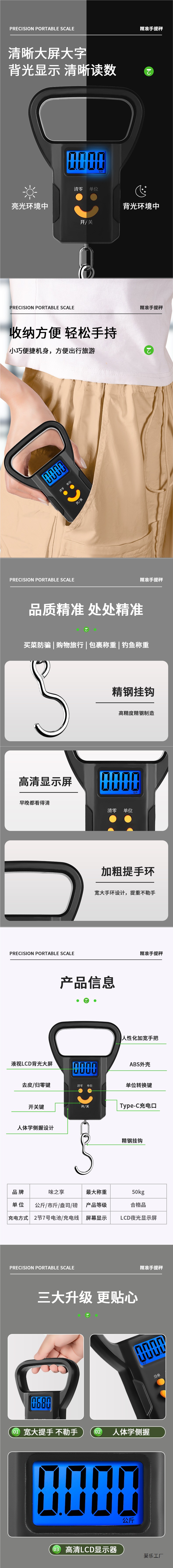 정밀 미니 휴대용 전자 저울 50kg 휴대용 고정밀 홈 익스프레스 스케일 후크 스케일 소형 스프링 스케일