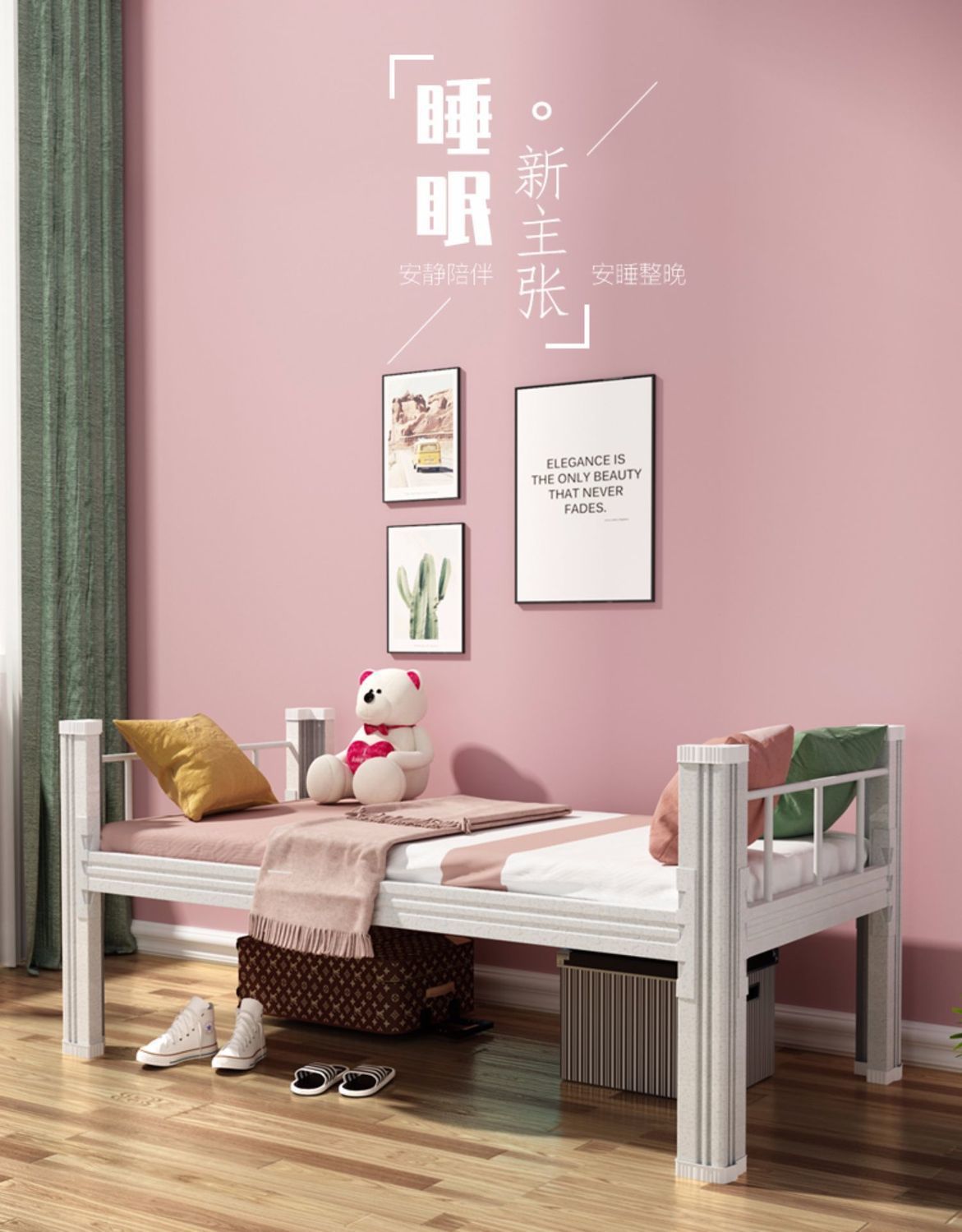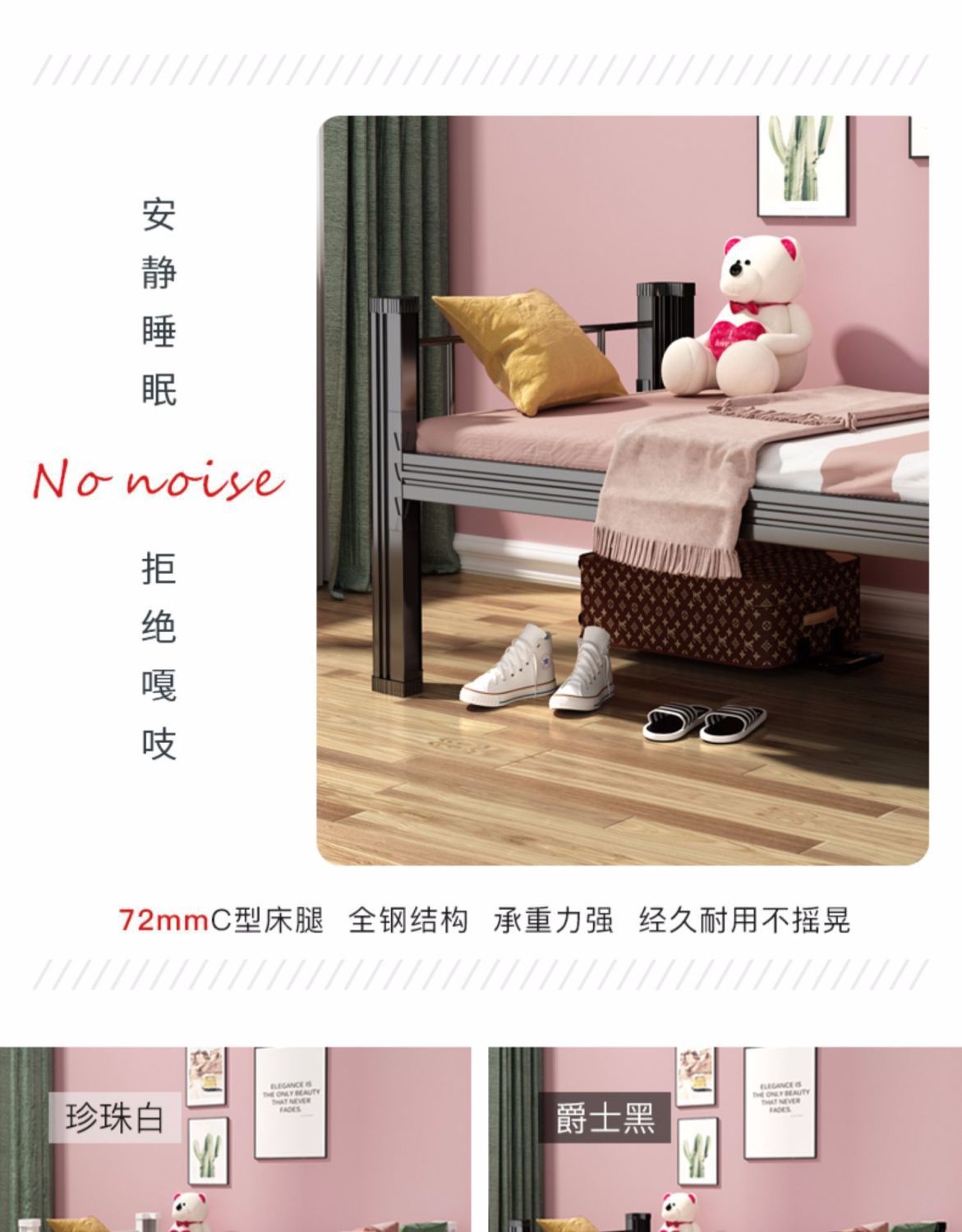 싱글 침대 학생 직원 기숙사 임대 방 단층 철제 프레임 침대 강철 1m 폭 1.2m 폭 아파트 싱글 침대