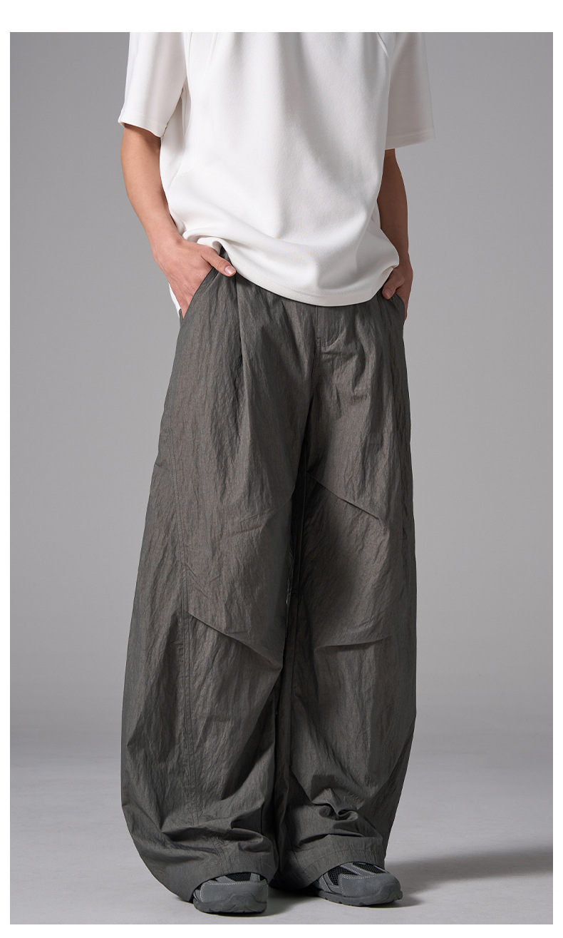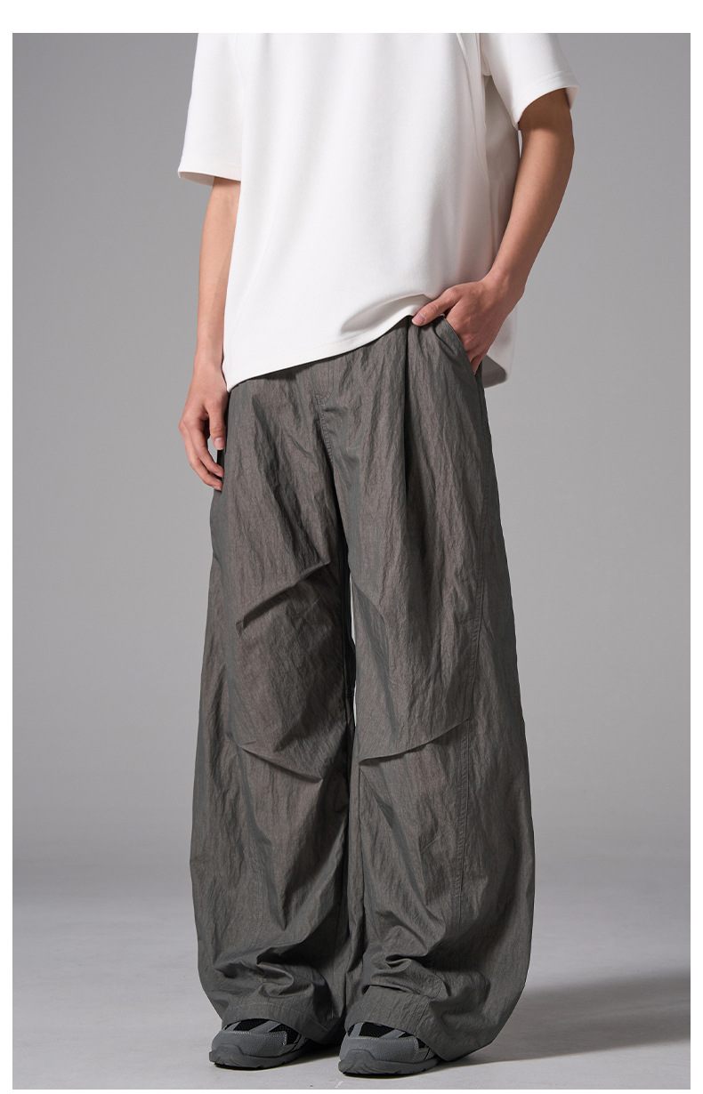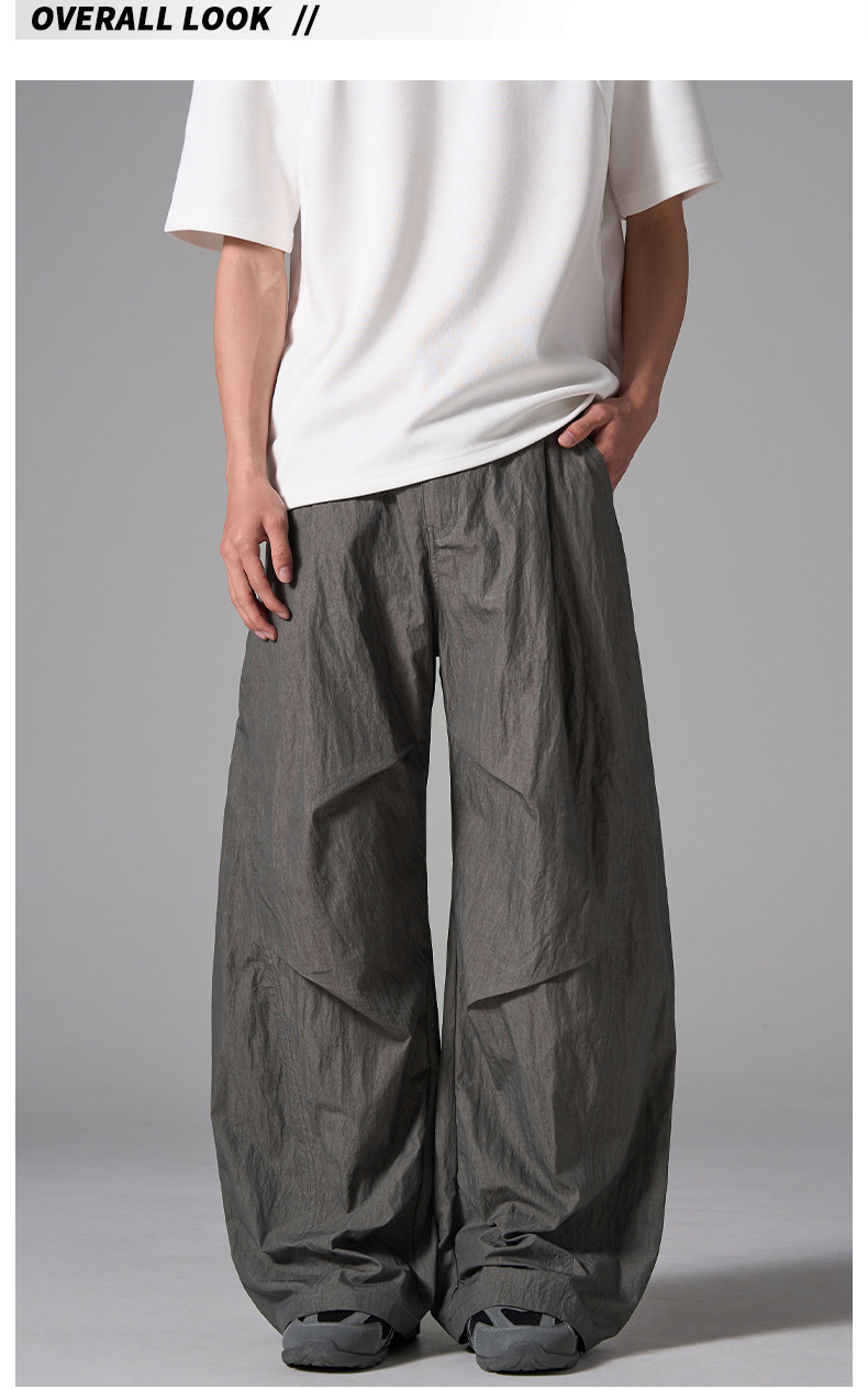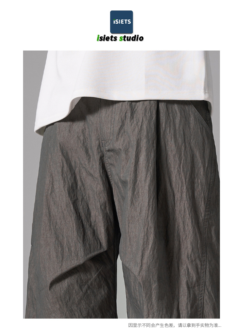 ISIETS 아메리칸 컷 루즈 실루엣 워크웨어 남성용 루즈 캐주얼 얇은 속건성 낙하산 바지