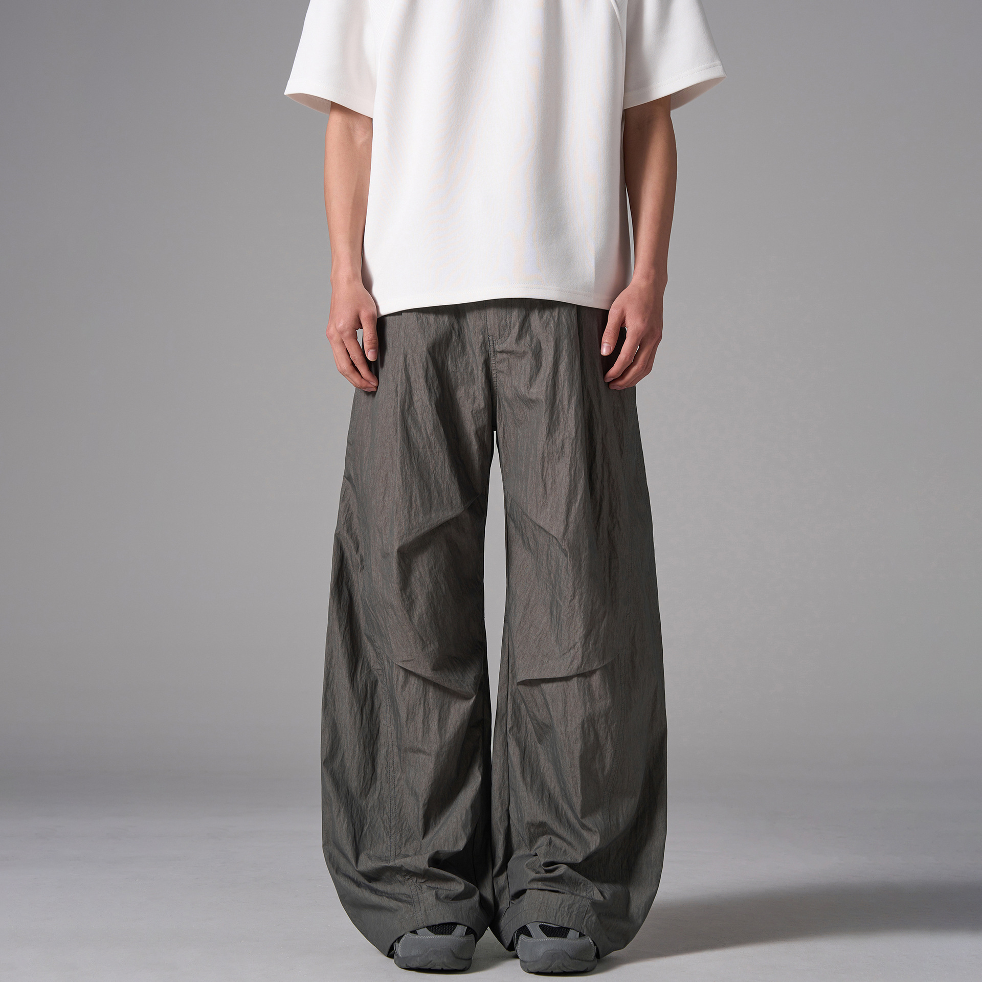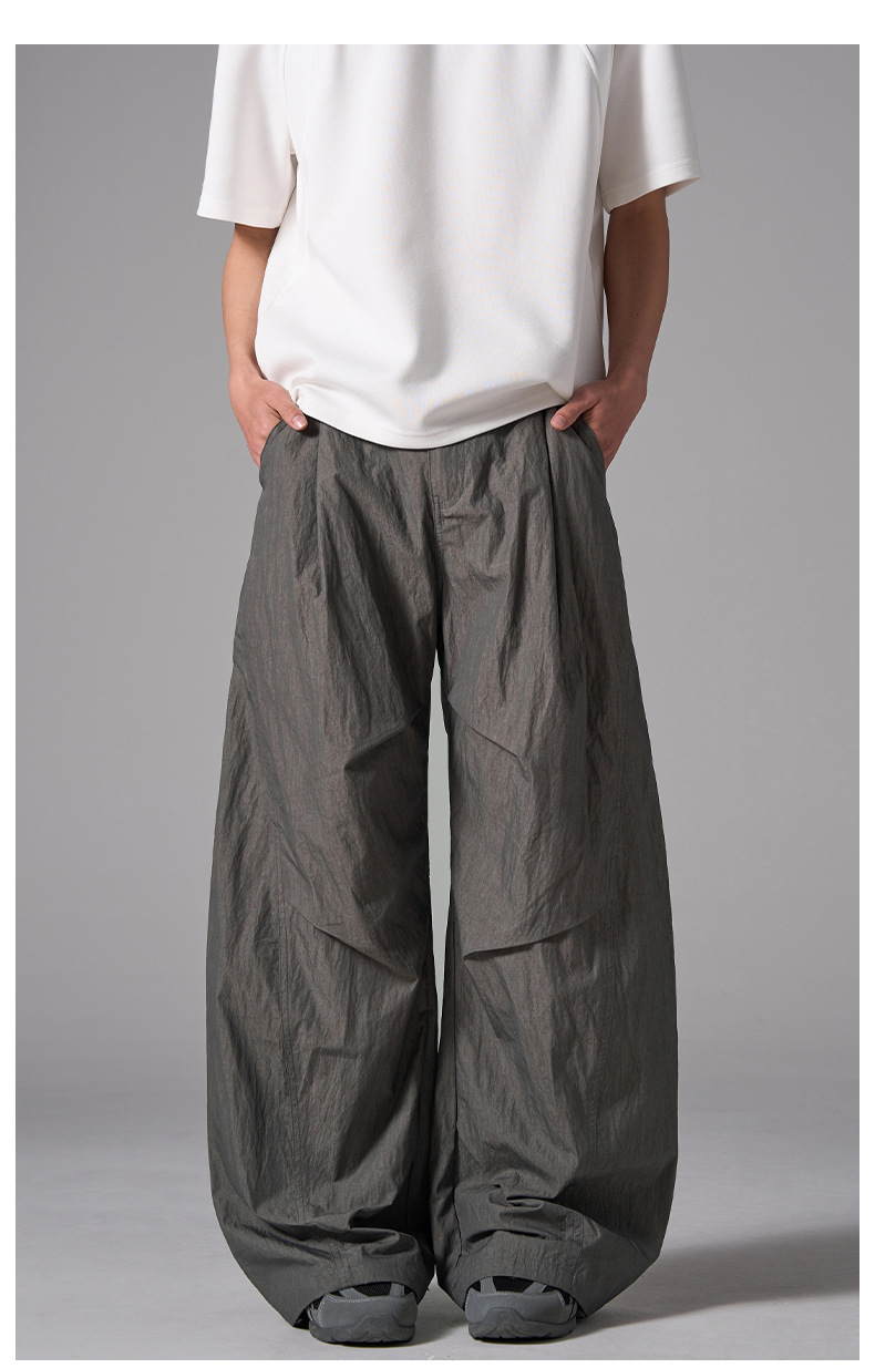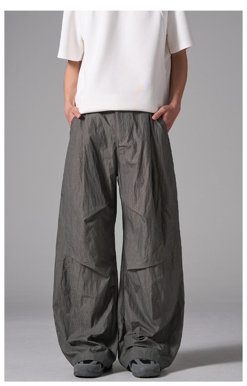 ISIETS 아메리칸 컷 루즈 실루엣 워크웨어 남성용 루즈 캐주얼 얇은 속건성 낙하산 바지