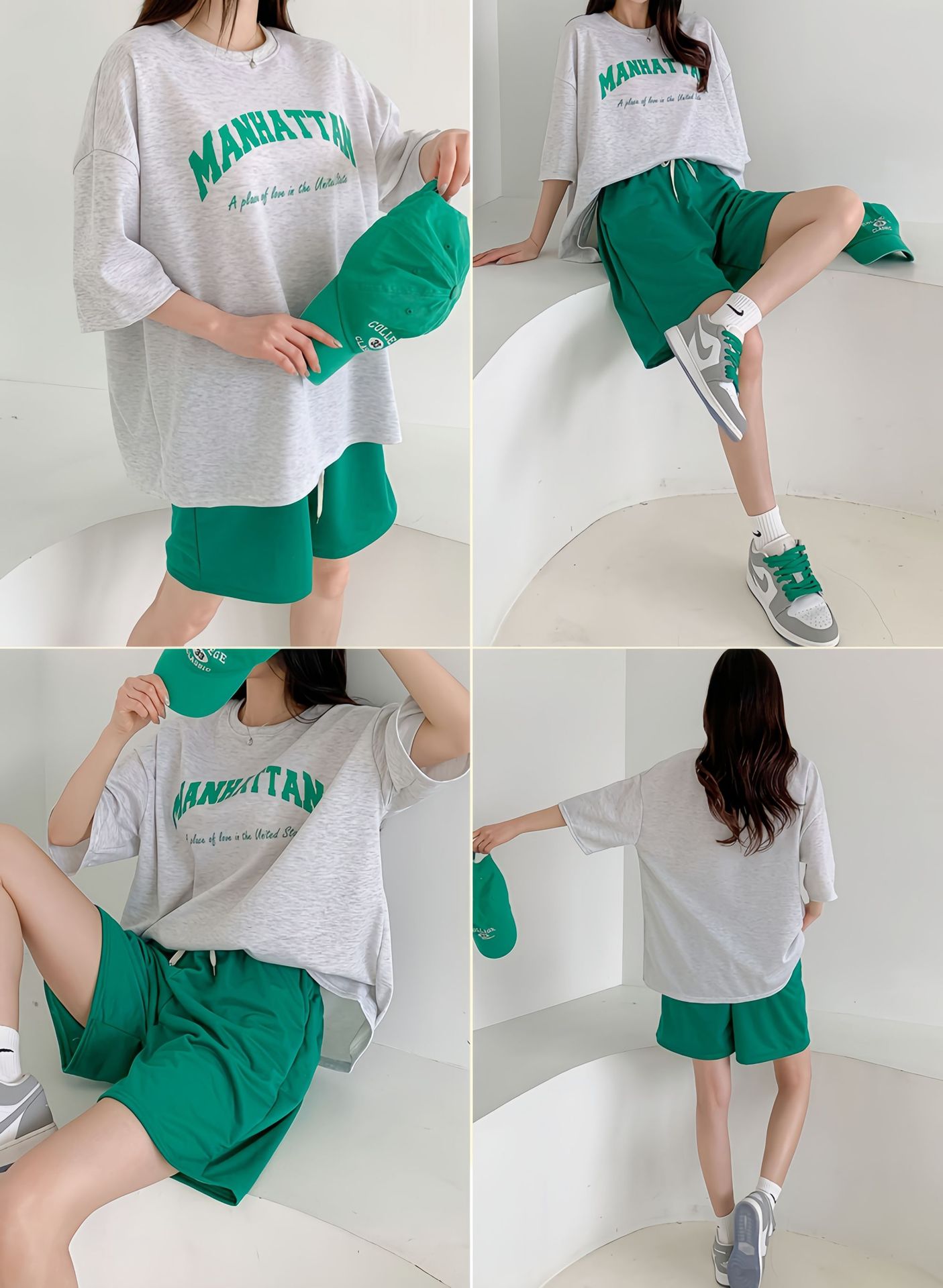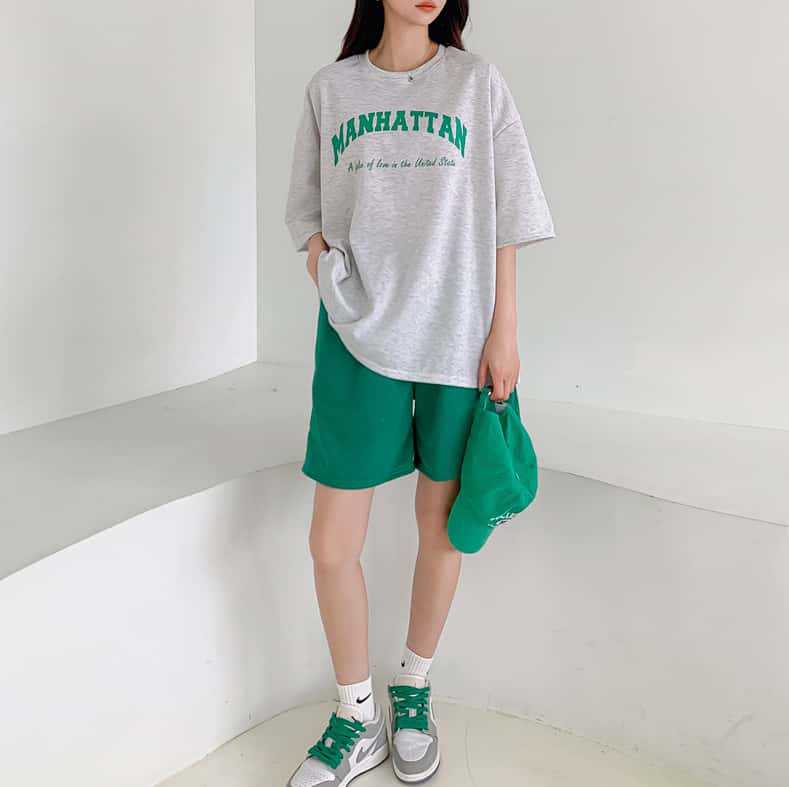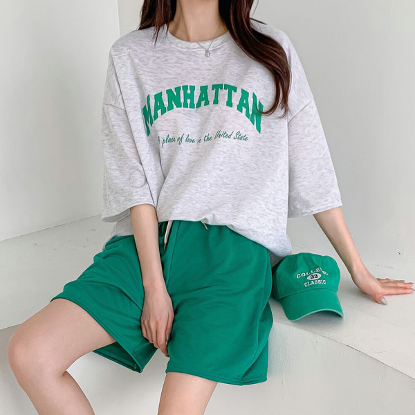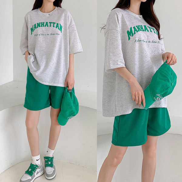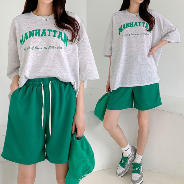 여름 새로운 한국 패션 투피스 세트 대형 티셔츠 바지 느슨한 학생 정장 캐주얼 스포츠 정장 여성스토어 가기