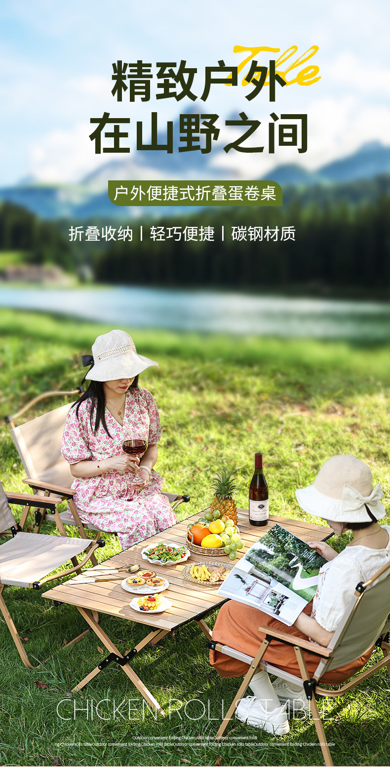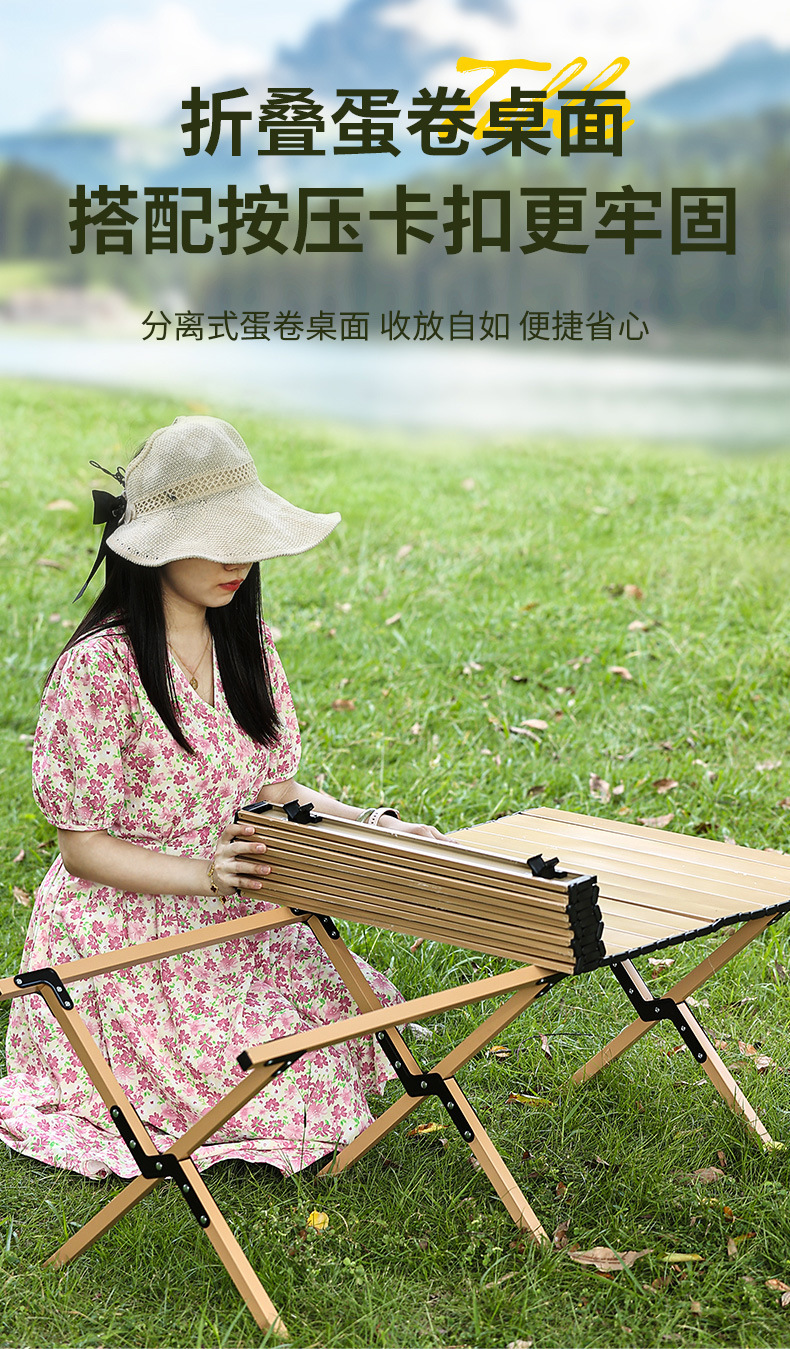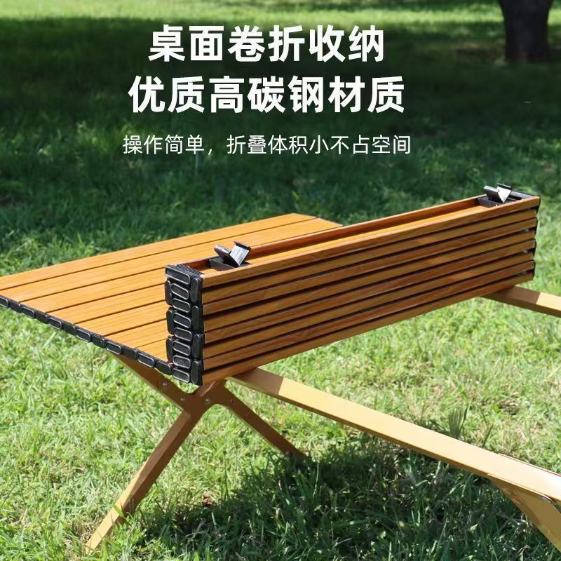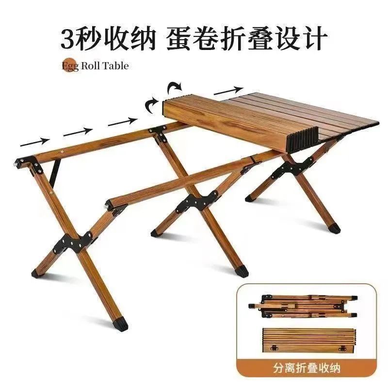 새로운 나뭇결 계란말이 테이블 야외 접이식 테이블 휴대용 캠핑 피크닉 테이블 두꺼운 크로스 다리 접이식 테이블