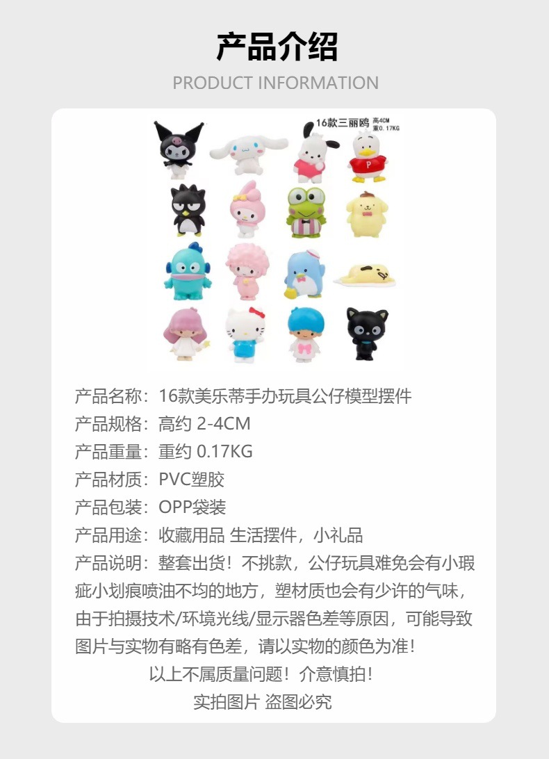 16 미니 버전 멜로디 파차 개 쿠로미 제미니 시리즈 장난감 인형 손 모델 장식품