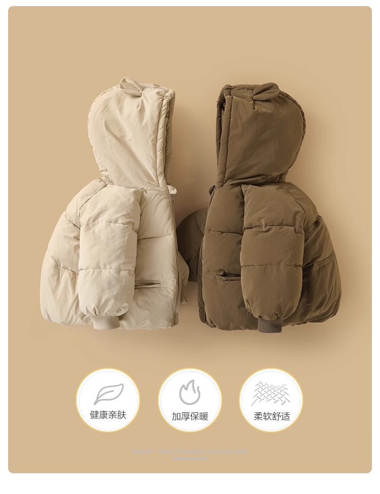 새로운 어린이 면화 코트, 얼룩 방지, 소년 소녀를 위한 세련된 다운 면화 코트, 아기 두꺼운 후드 따뜻한 면화 코트스토어 가기