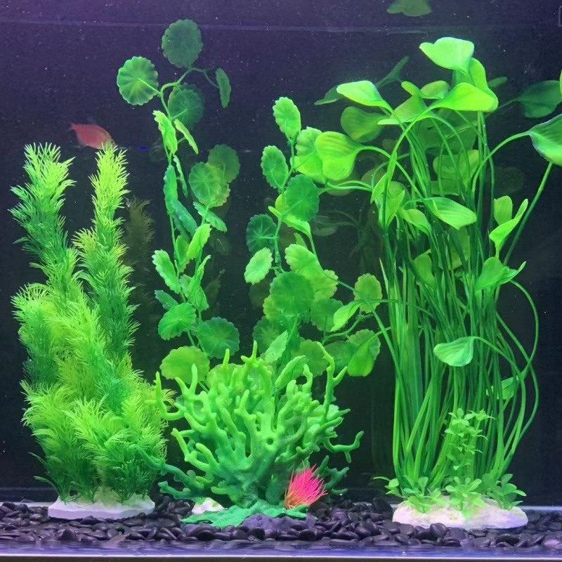 수조 수족관 장식 플라스틱 가짜 수생 식물 수족관 조경 시뮬레이션 수생 식물 인테리어 부드러운 가짜 꽃과 잔디 장식품 세트스토어 가기