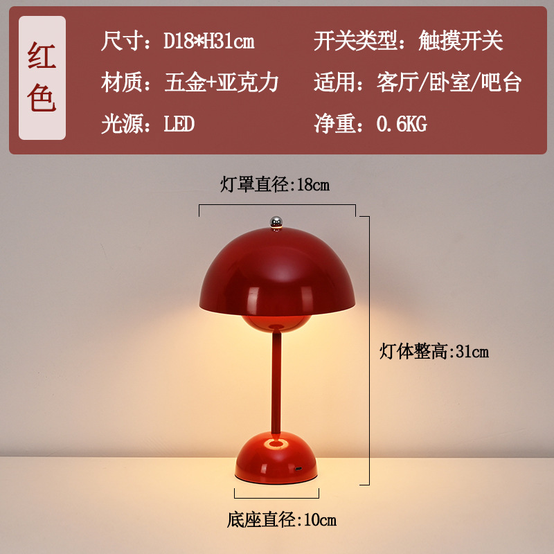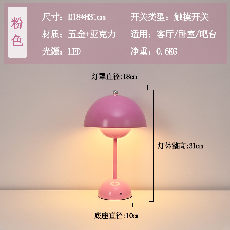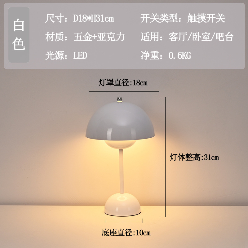 꽃봉오리 테이블 램프 침실 머리맡 램프 웨딩 램프 분위기 야간 조명 터치 무선 충전 책상 버섯 램프