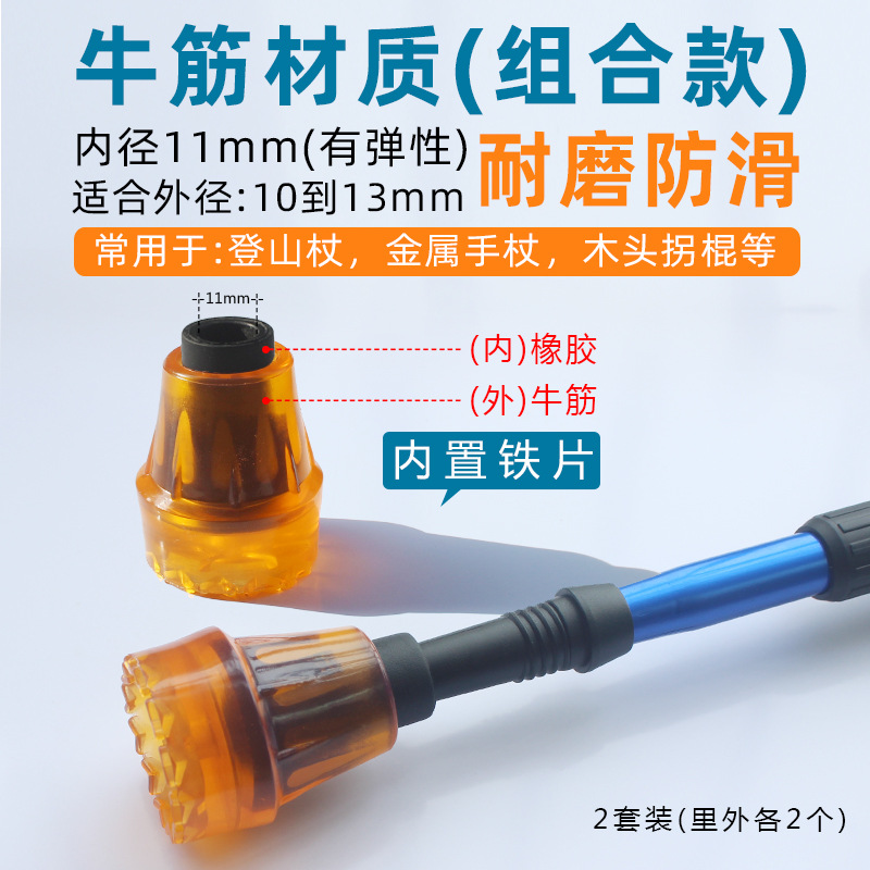 소가죽 겨드랑이 지팡이, 미끄럼 방지 발 패드, 이중 지팡이, 고무 헤드, 4개의 발 커버, 지팡이, 등산 지팡이 액세서리, 무음 베이스스토어 가기