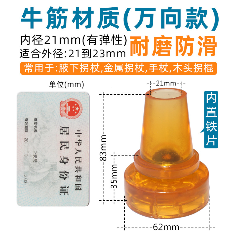 소가죽 겨드랑이 지팡이, 미끄럼 방지 발 패드, 이중 지팡이, 고무 헤드, 4개의 발 커버, 지팡이, 등산 지팡이 액세서리, 무음 베이스
