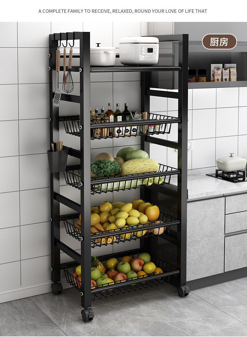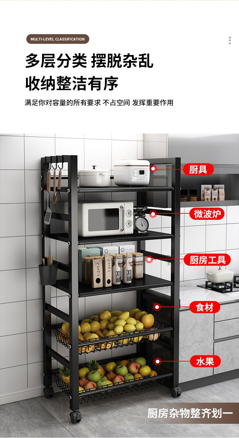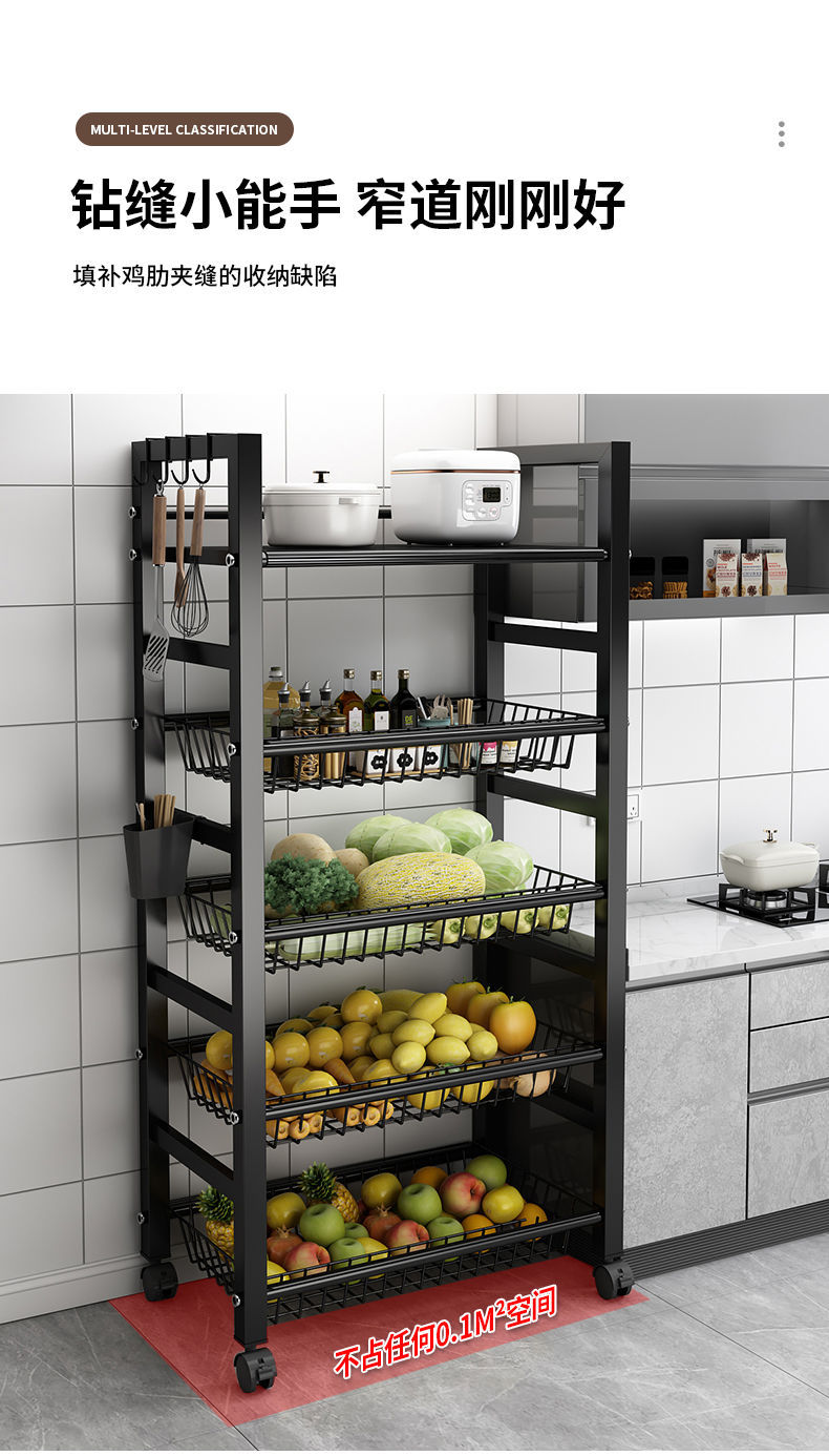 주방 수납 선반 야채 바구니 바닥에서 천장까지 다층 전자 레인지 수납 선반 이동식 다기능 야채 수납 선반