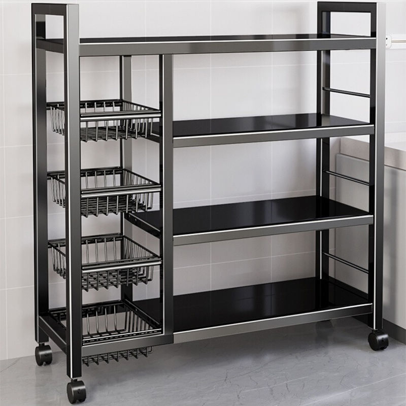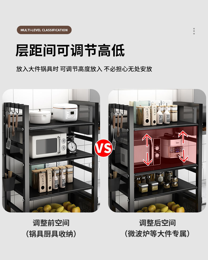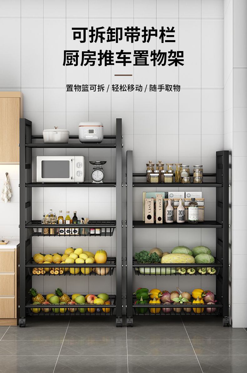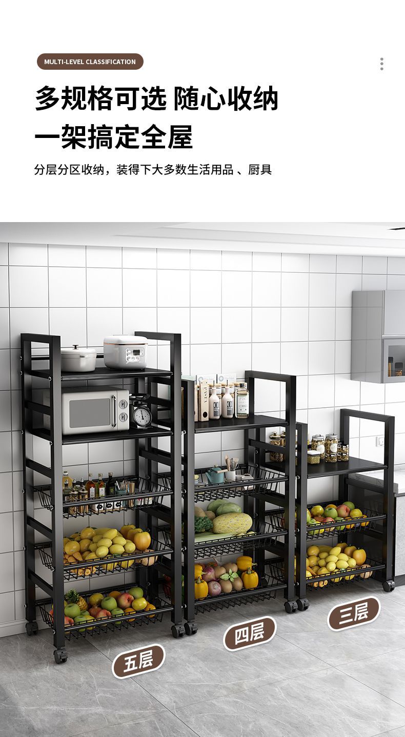 주방 수납 선반 야채 바구니 바닥에서 천장까지 다층 전자 레인지 수납 선반 이동식 다기능 야채 수납 선반