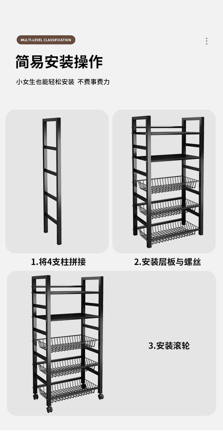 주방 수납 선반 야채 바구니 바닥에서 천장까지 다층 전자 레인지 수납 선반 이동식 다기능 야채 수납 선반스토어 가기