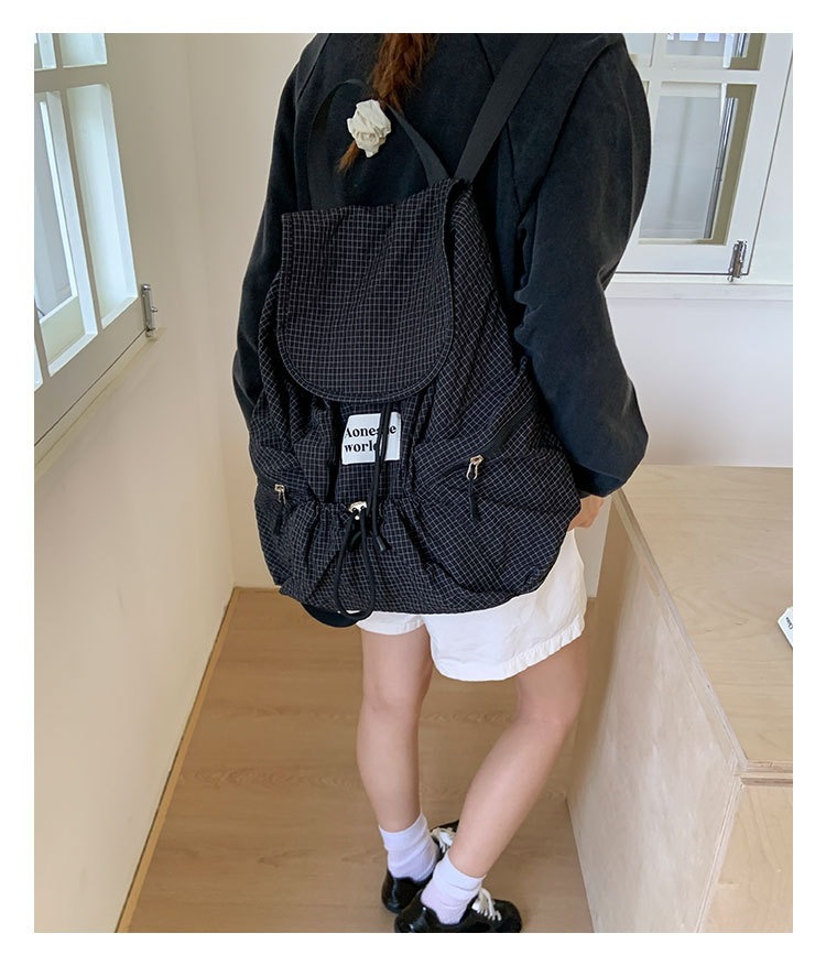 여성을위한 일본 캐주얼 격자 무늬 나일론 배낭 2025 새로운 경량 야외 등산 배낭 대용량 컴퓨터 가방스토어 가기