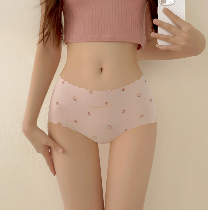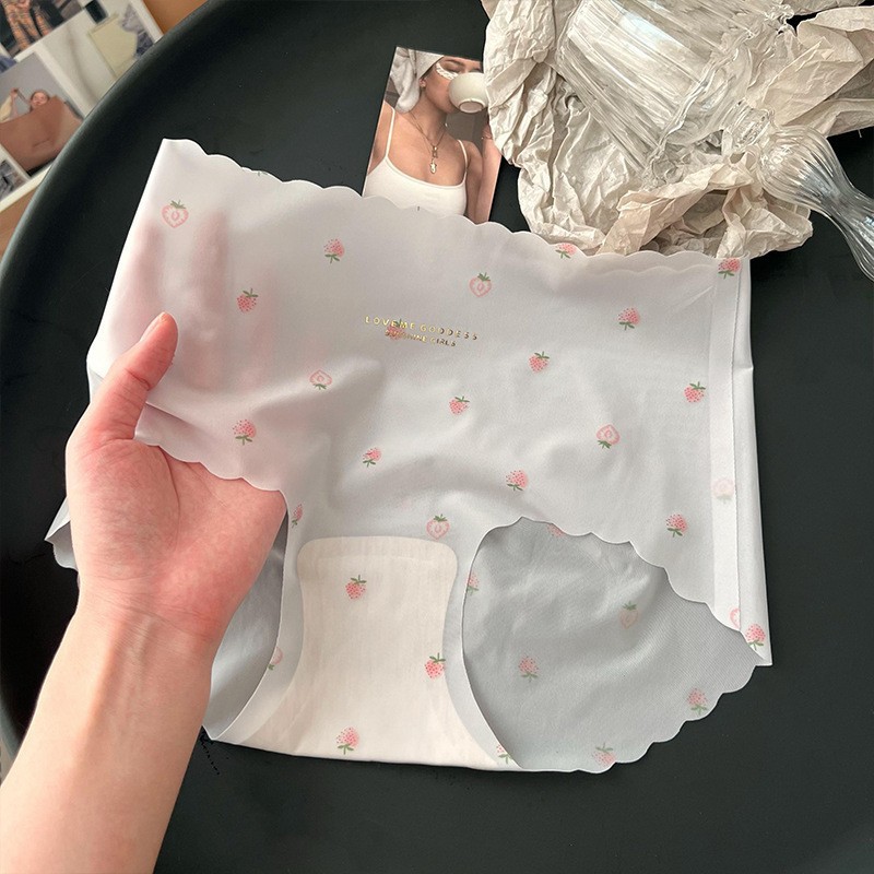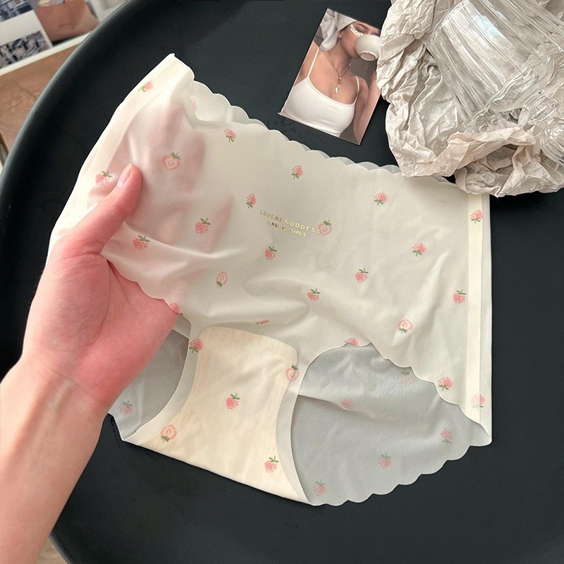 소녀들을 위한 초박형 얼음 실크 딸기 속옷, 달콤하고 귀여운 여름, 매끄럽고 편안하며 통기성이 뛰어난 소녀용 중간 허리 팬티스토어 가기