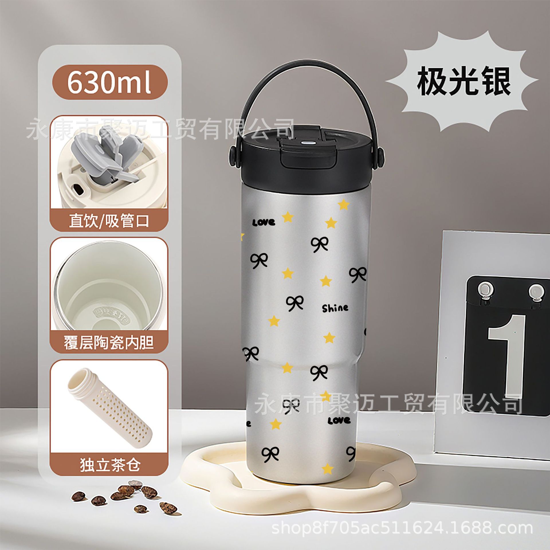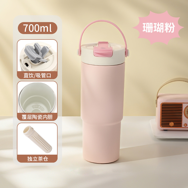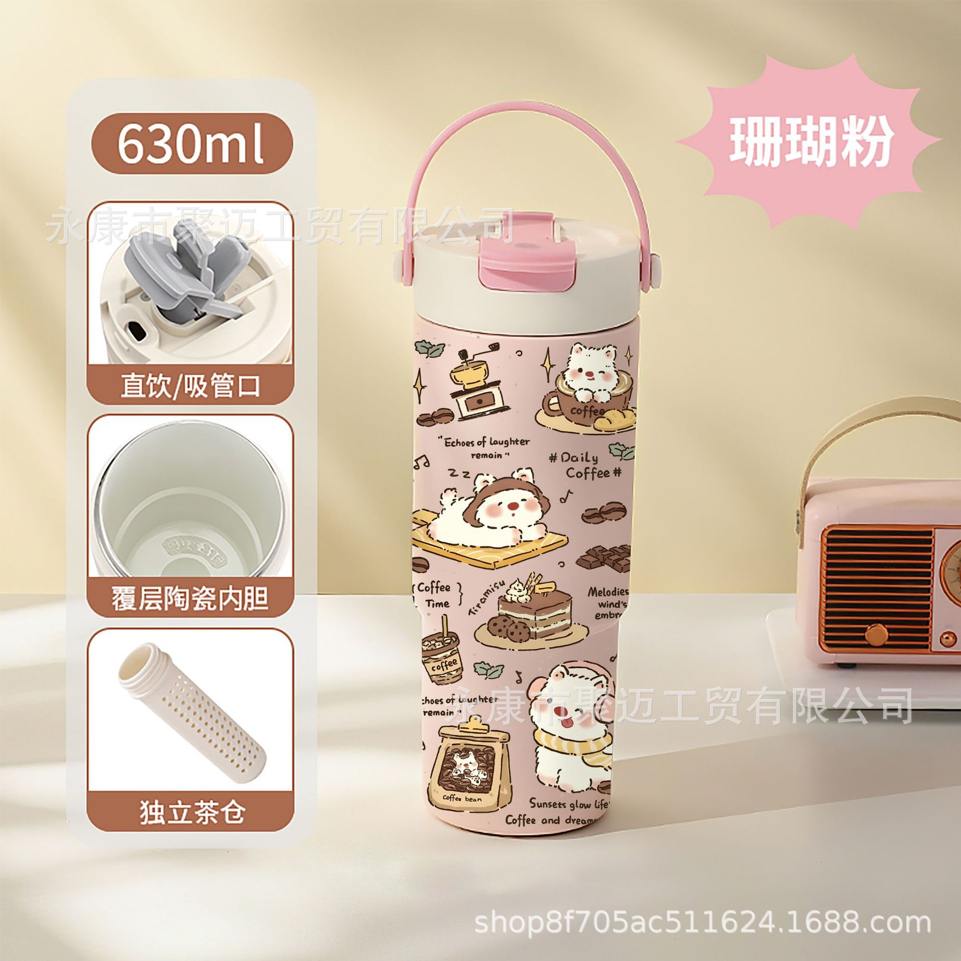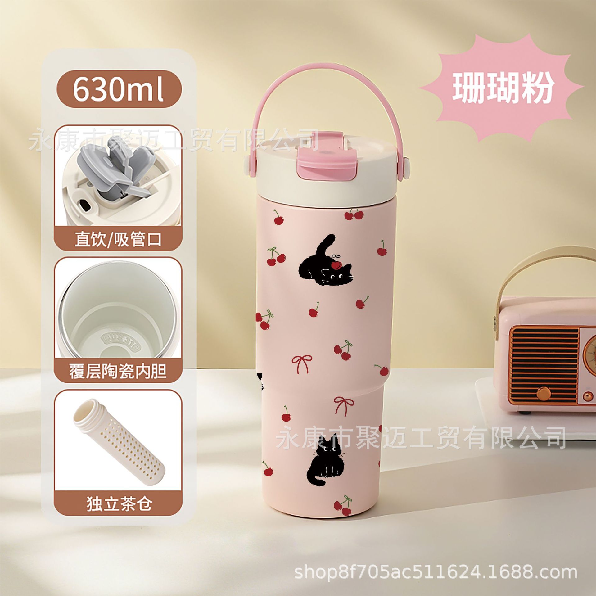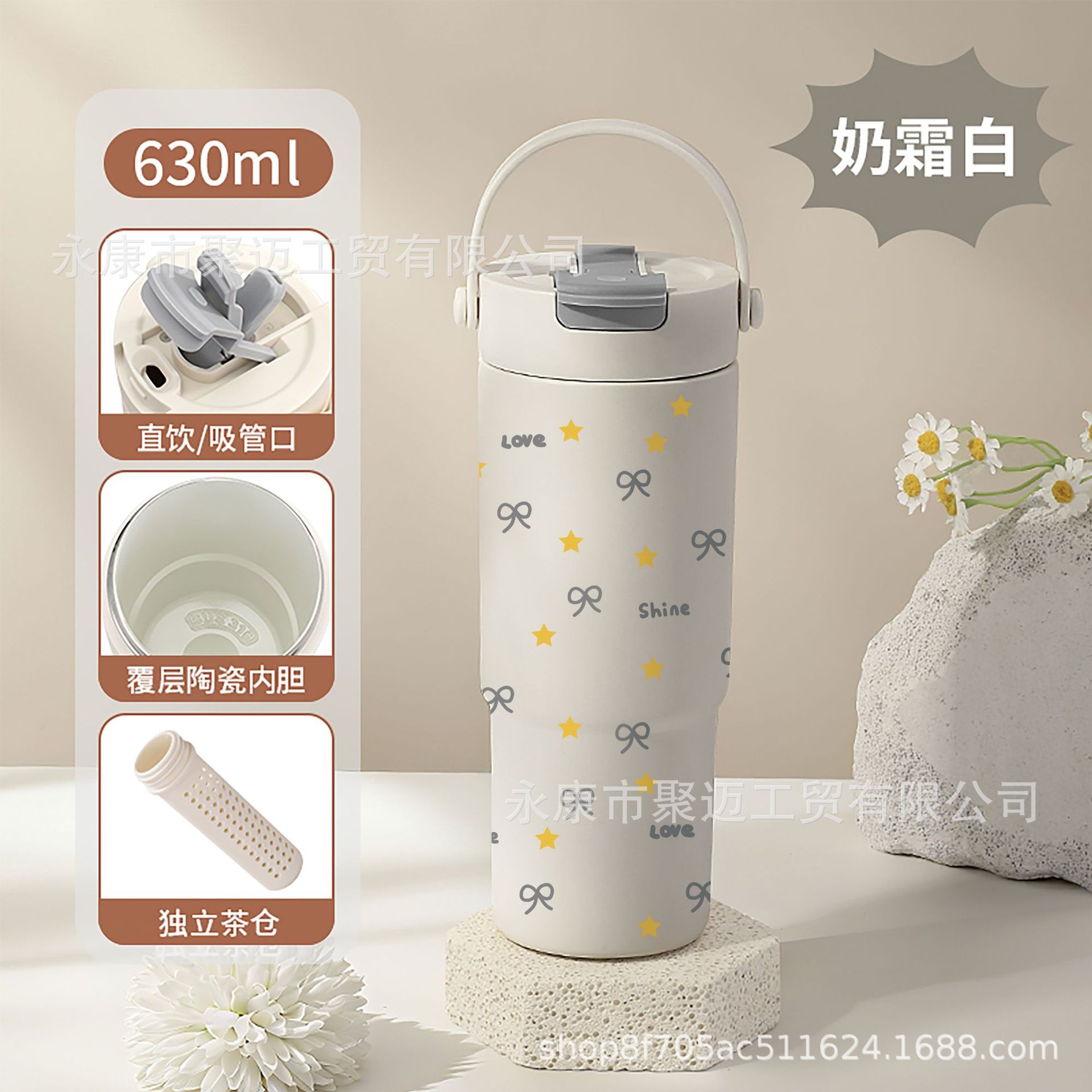 크로스보더 세라믹 내부 라이너 아이스컵 스테인리스 손잡이 보온컵 대용량 듀얼 드링크 커피컵 여성용 차량용 물컵스토어 가기