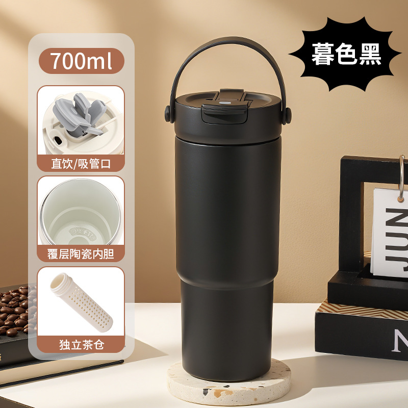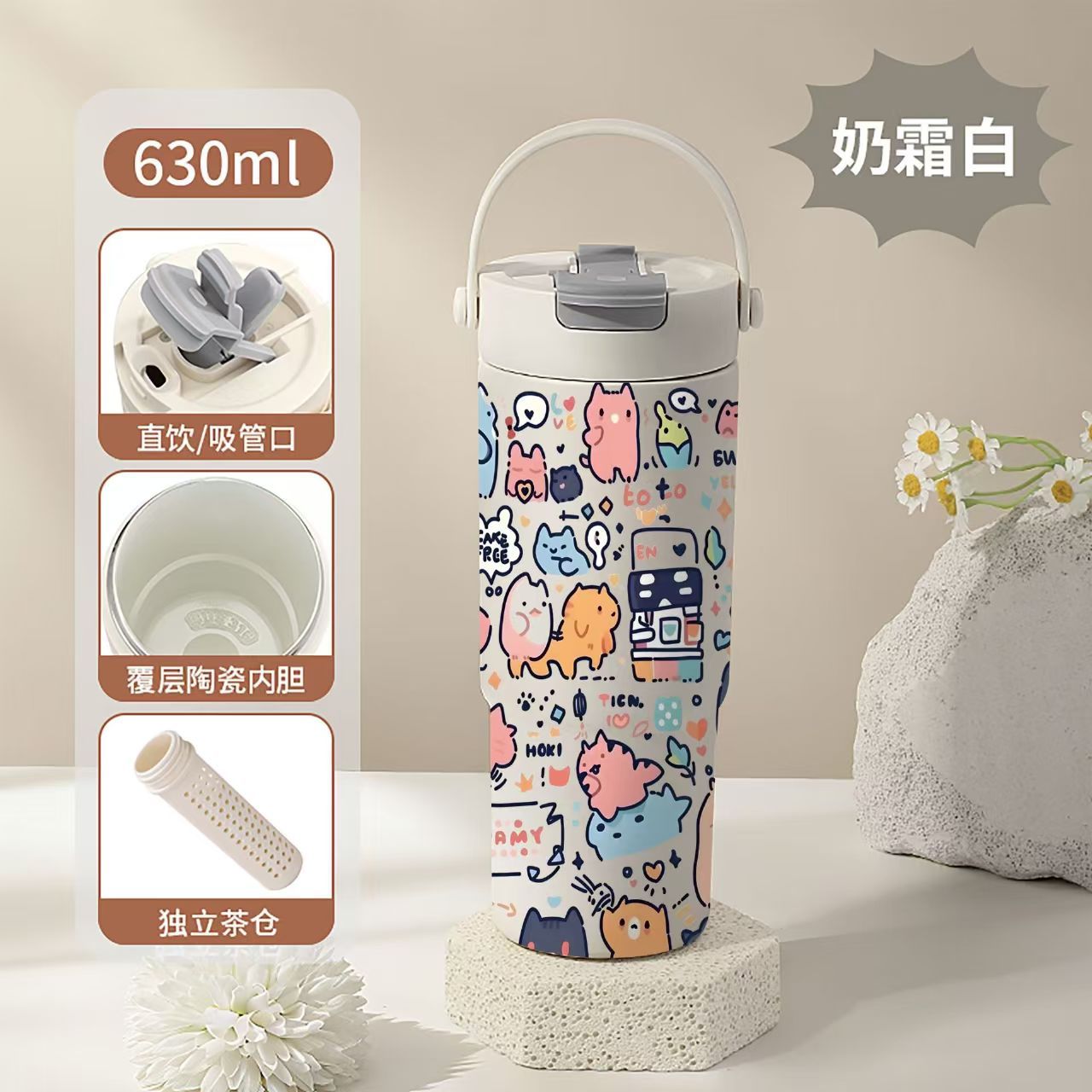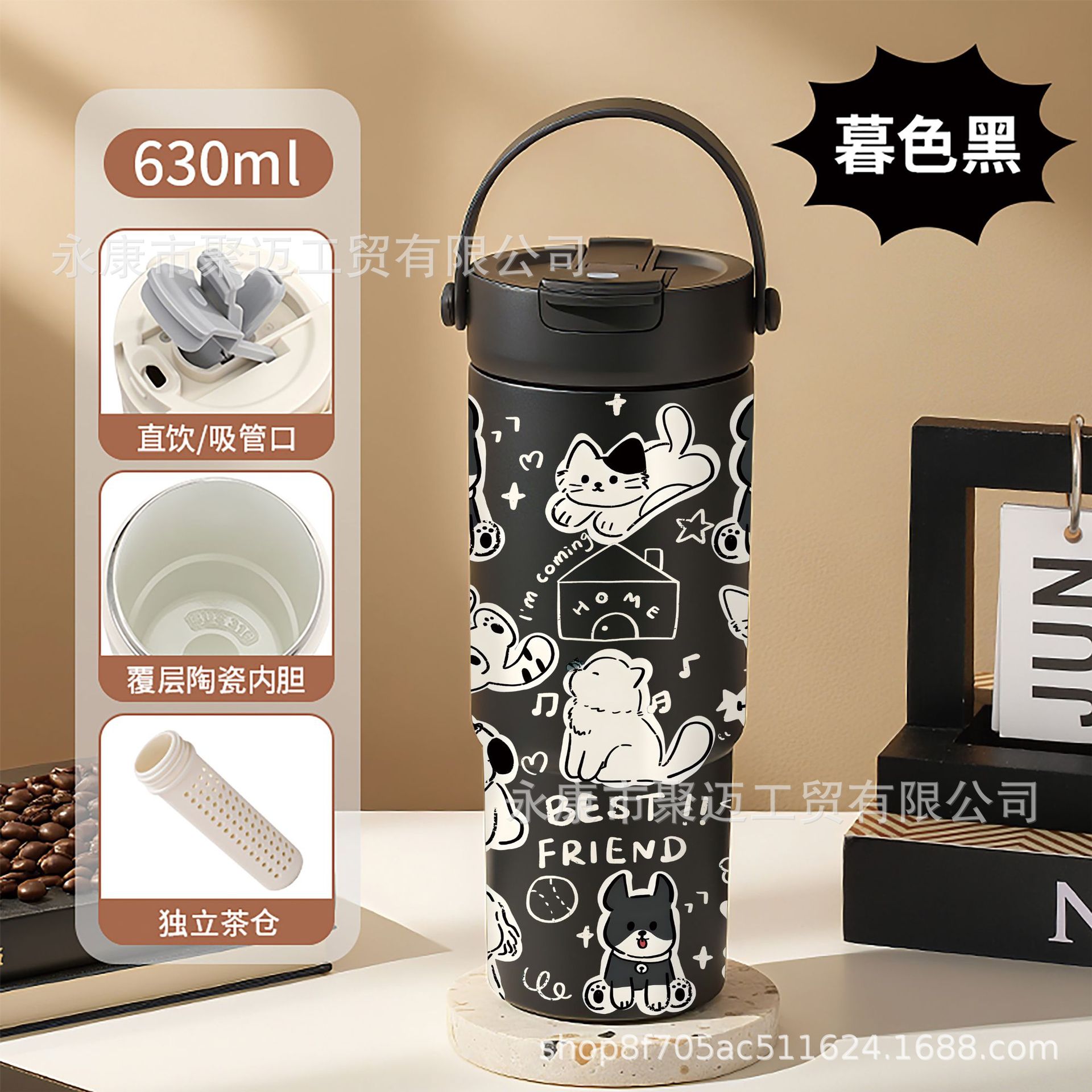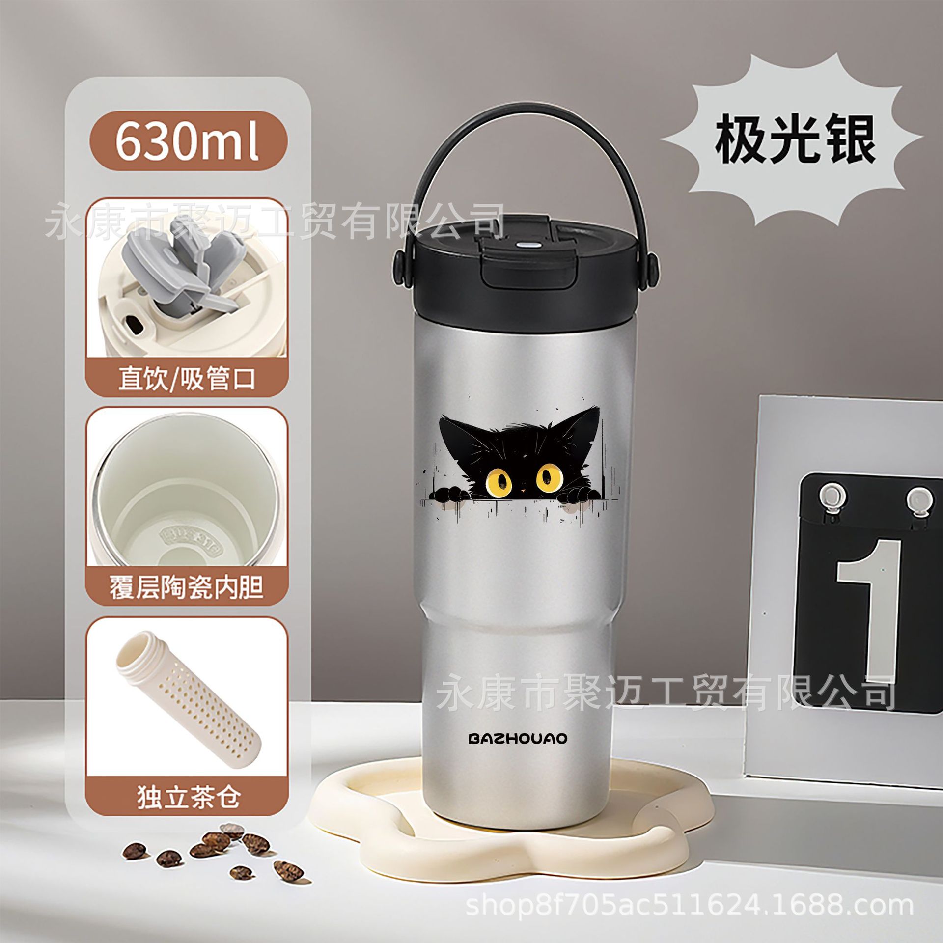 크로스보더 세라믹 내부 라이너 아이스컵 스테인리스 손잡이 보온컵 대용량 듀얼 드링크 커피컵 여성용 차량용 물컵스토어 가기