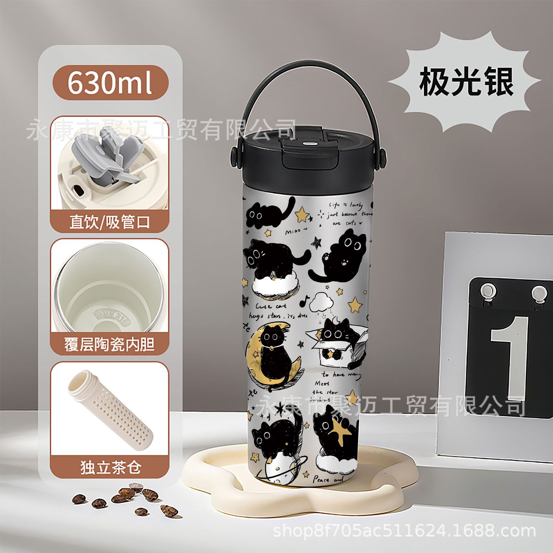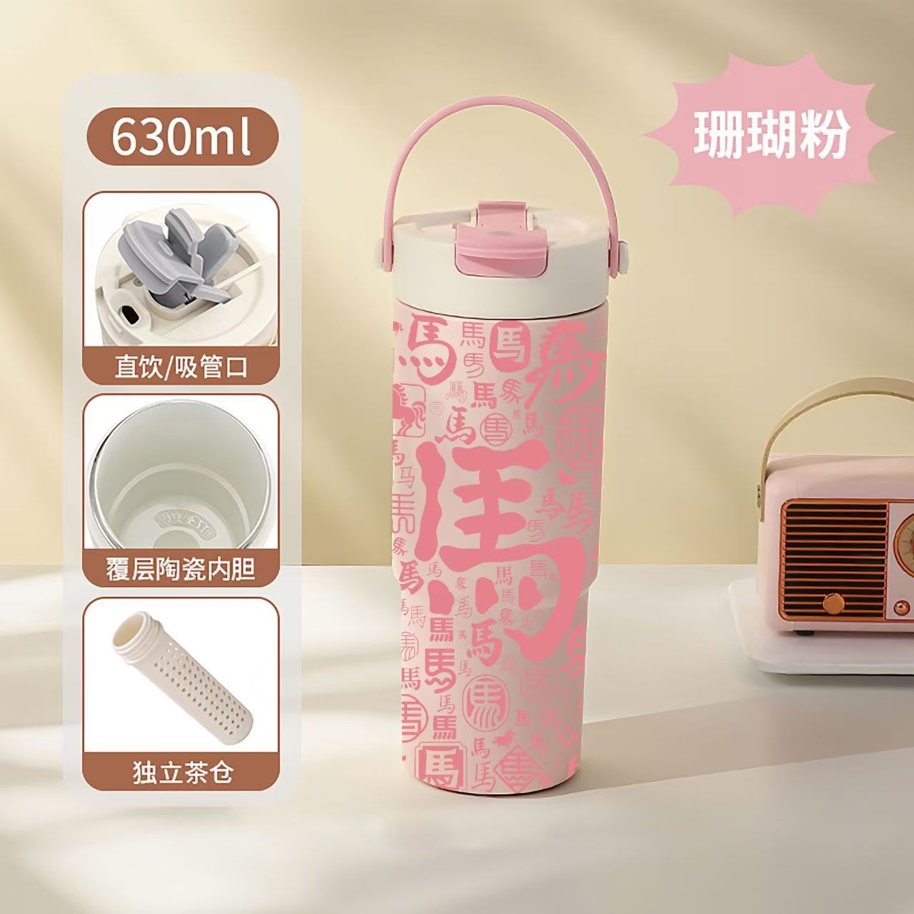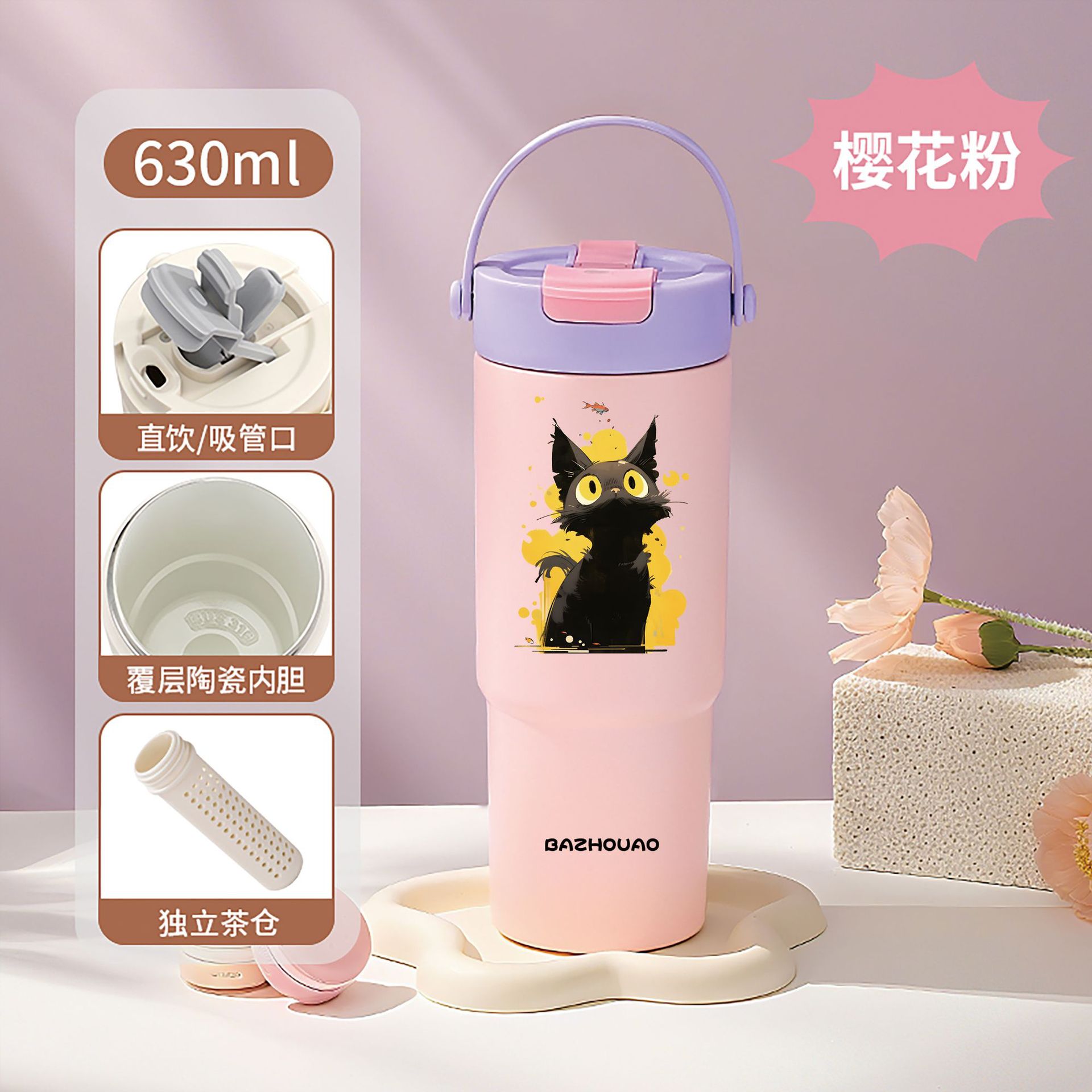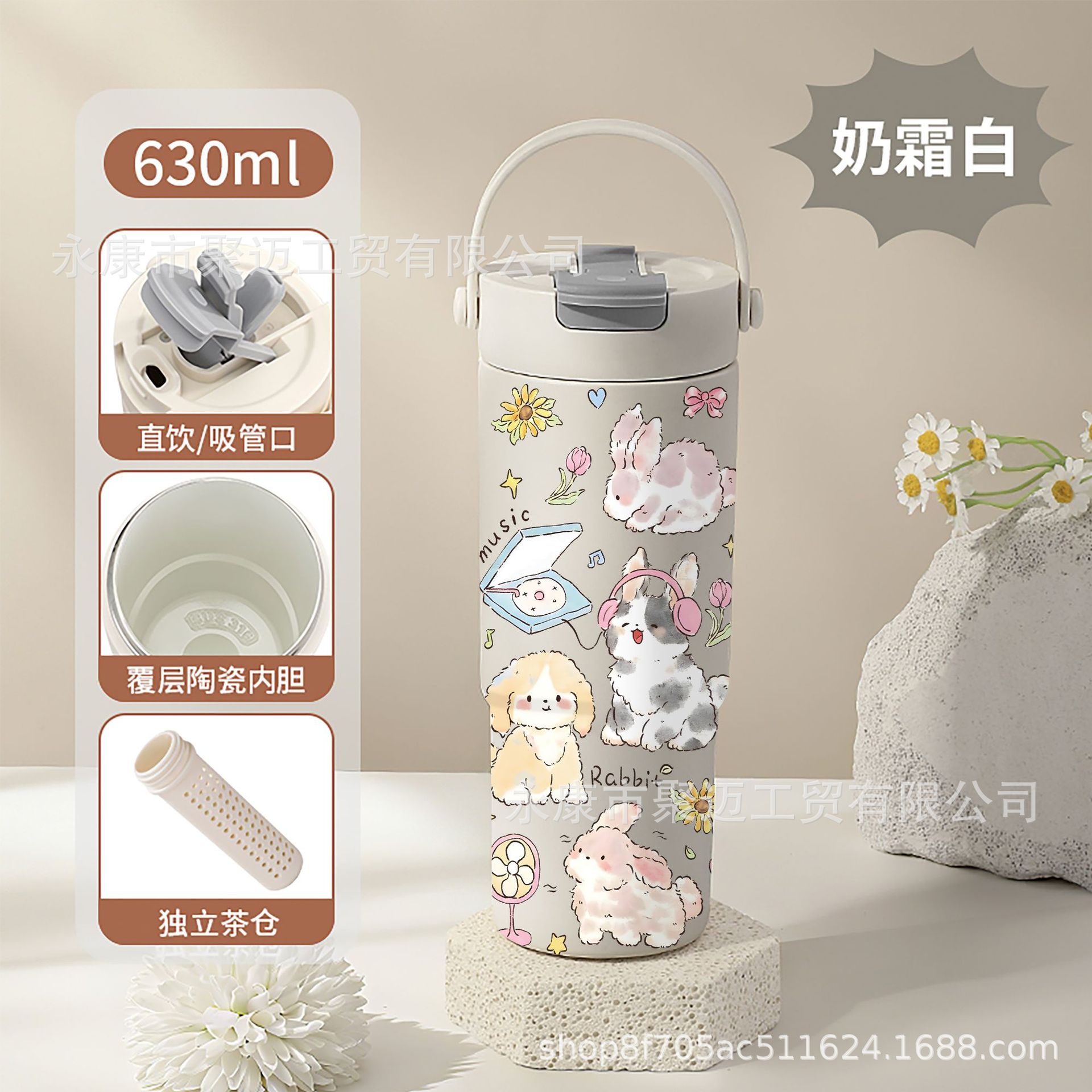 크로스보더 세라믹 내부 라이너 아이스컵 스테인리스 손잡이 보온컵 대용량 듀얼 드링크 커피컵 여성용 차량용 물컵스토어 가기