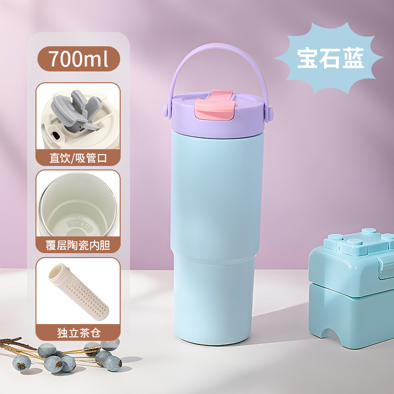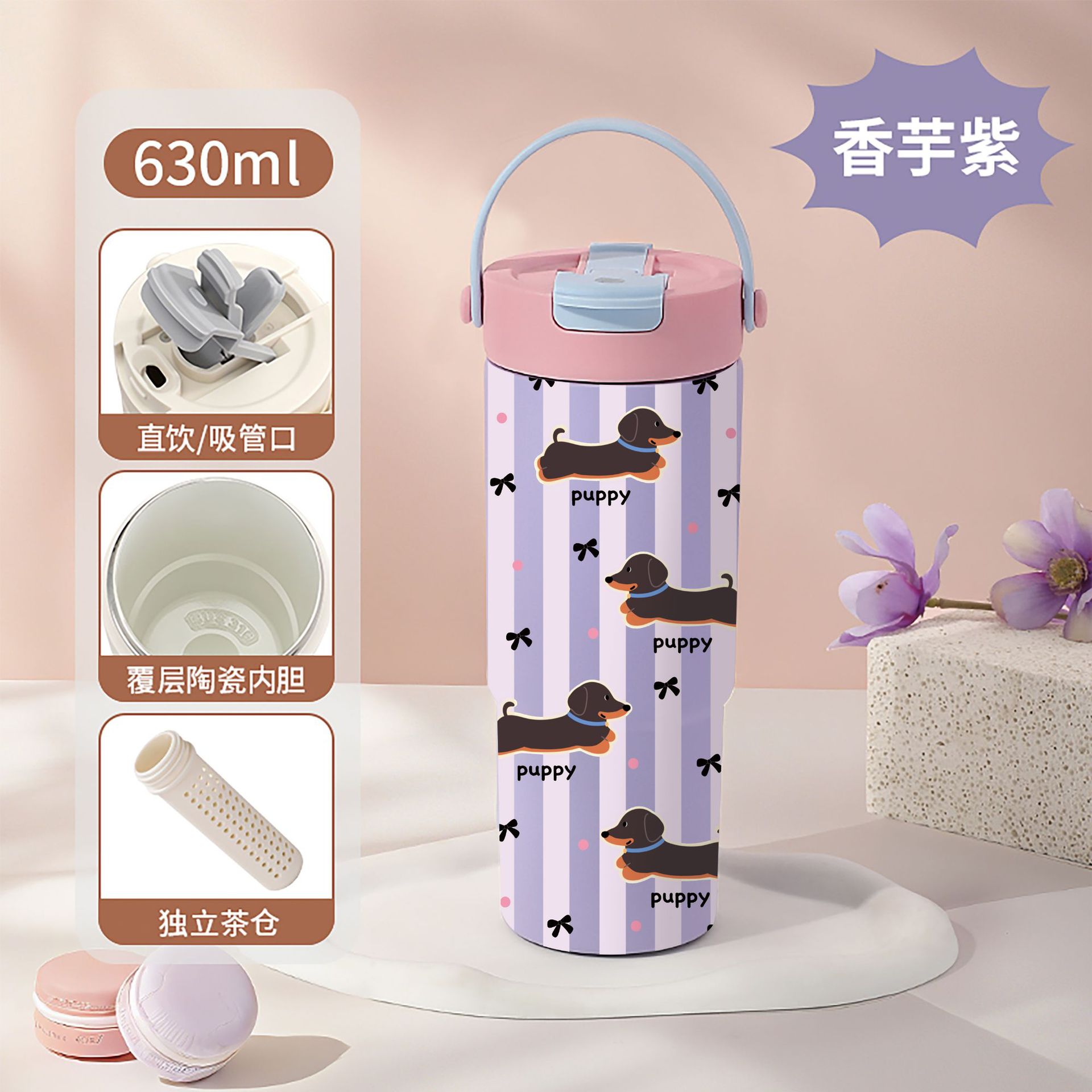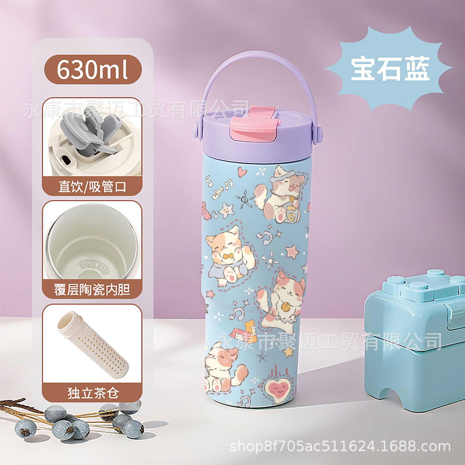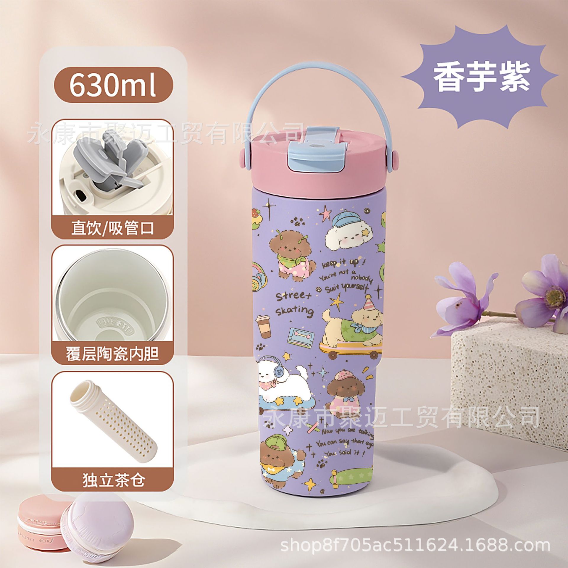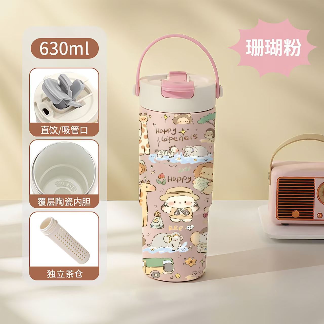 크로스보더 세라믹 내부 라이너 아이스컵 스테인리스 손잡이 보온컵 대용량 듀얼 드링크 커피컵 여성용 차량용 물컵스토어 가기