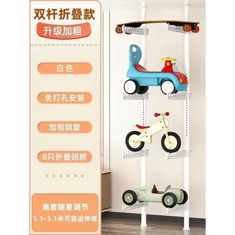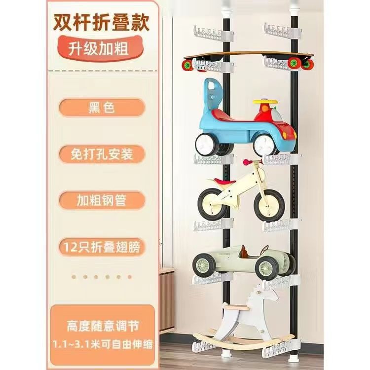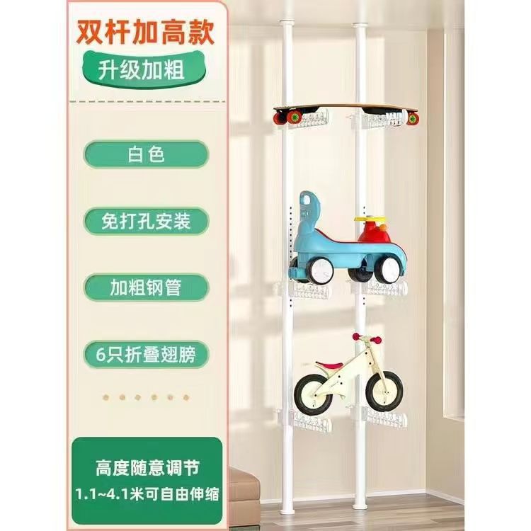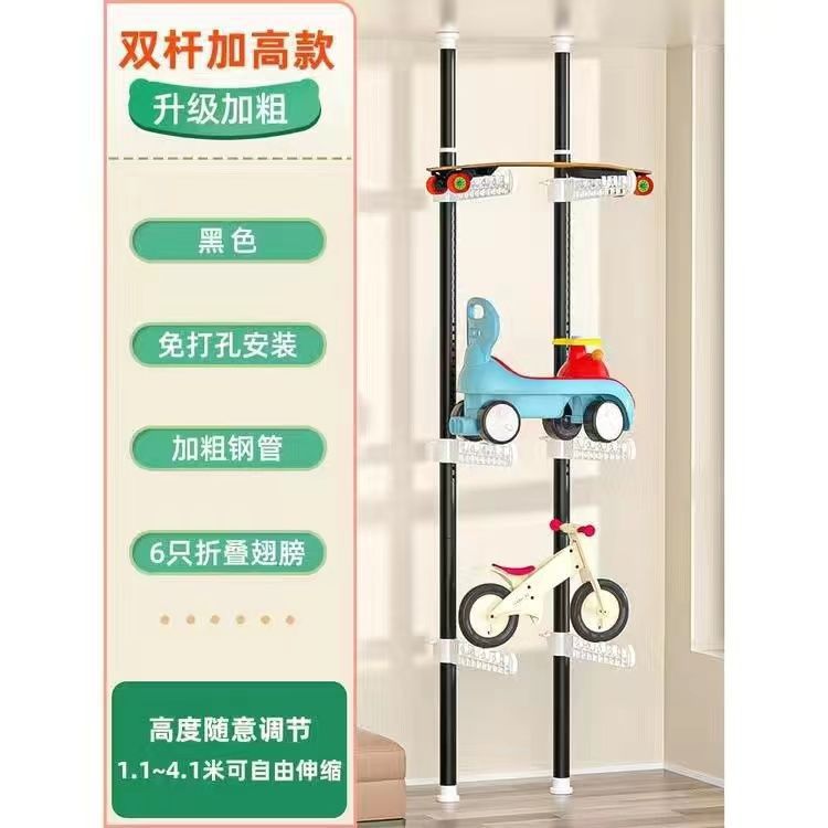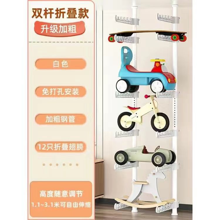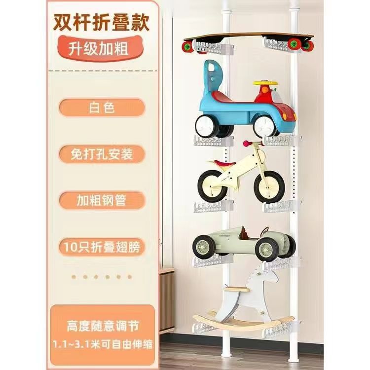 어린이용 자동차 랙, 어린이 장난감 자동차 보관 랙, 거실 가정용 바닥에서 천장까지 펀치 없는 스케이트보드 자전거 랙