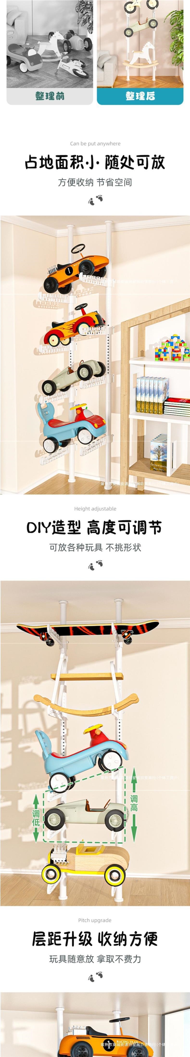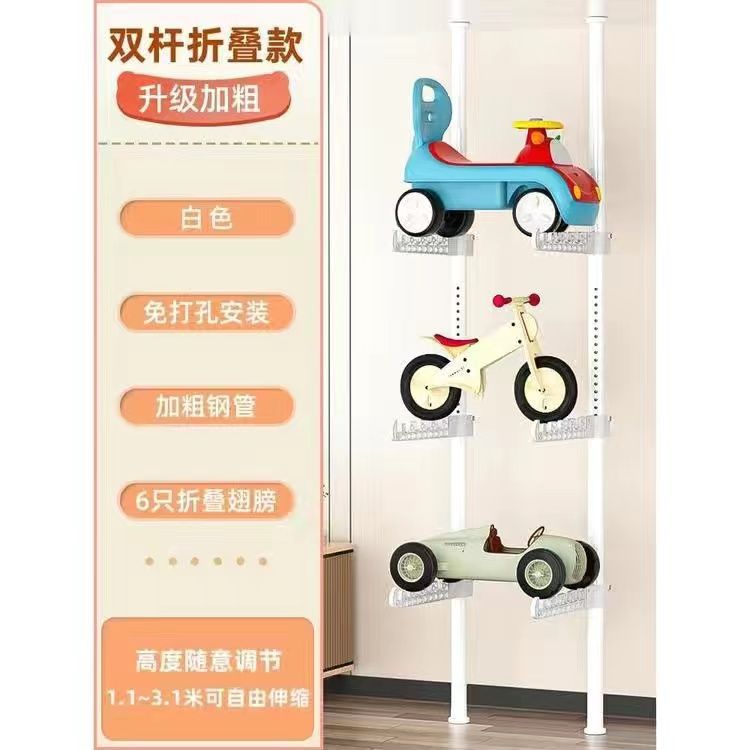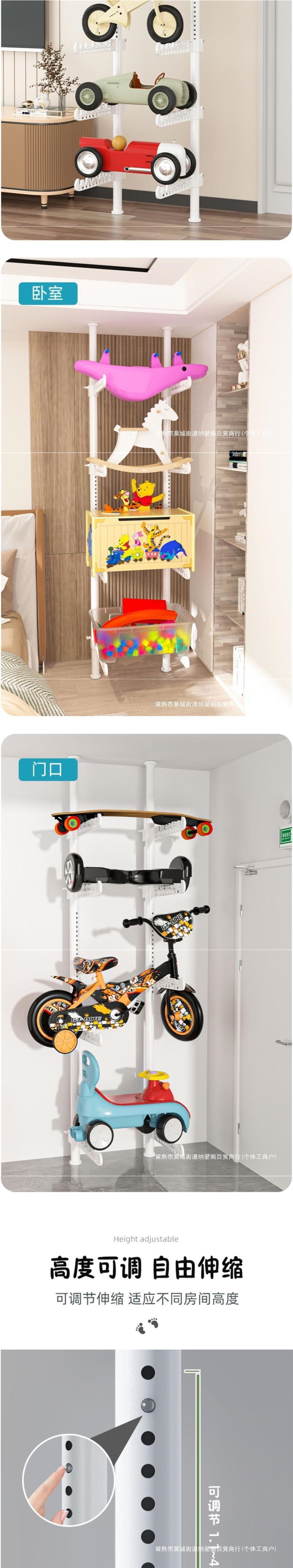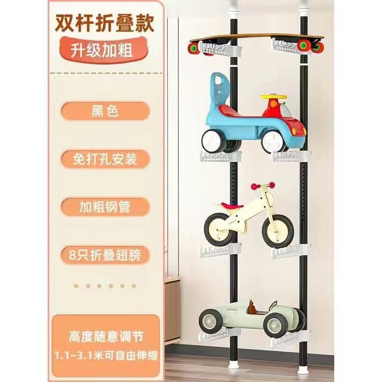 어린이용 자동차 랙, 어린이 장난감 자동차 보관 랙, 거실 가정용 바닥에서 천장까지 펀치 없는 스케이트보드 자전거 랙