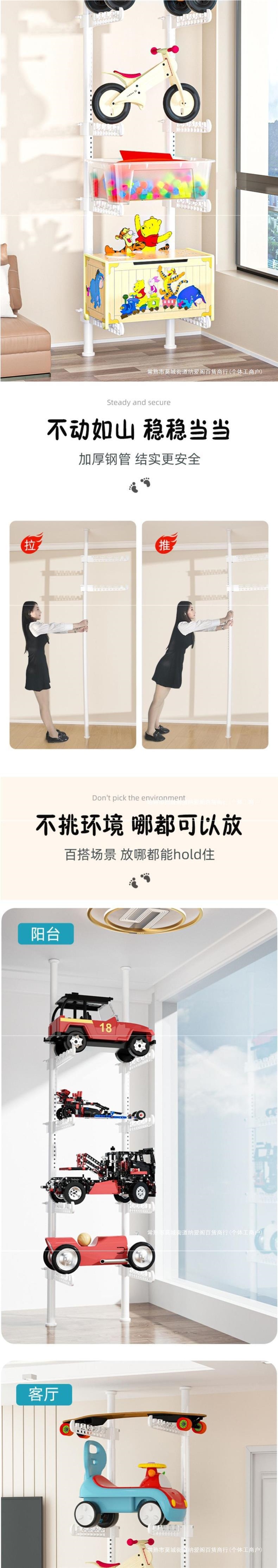 어린이용 자동차 랙, 어린이 장난감 자동차 보관 랙, 거실 가정용 바닥에서 천장까지 펀치 없는 스케이트보드 자전거 랙스토어 가기