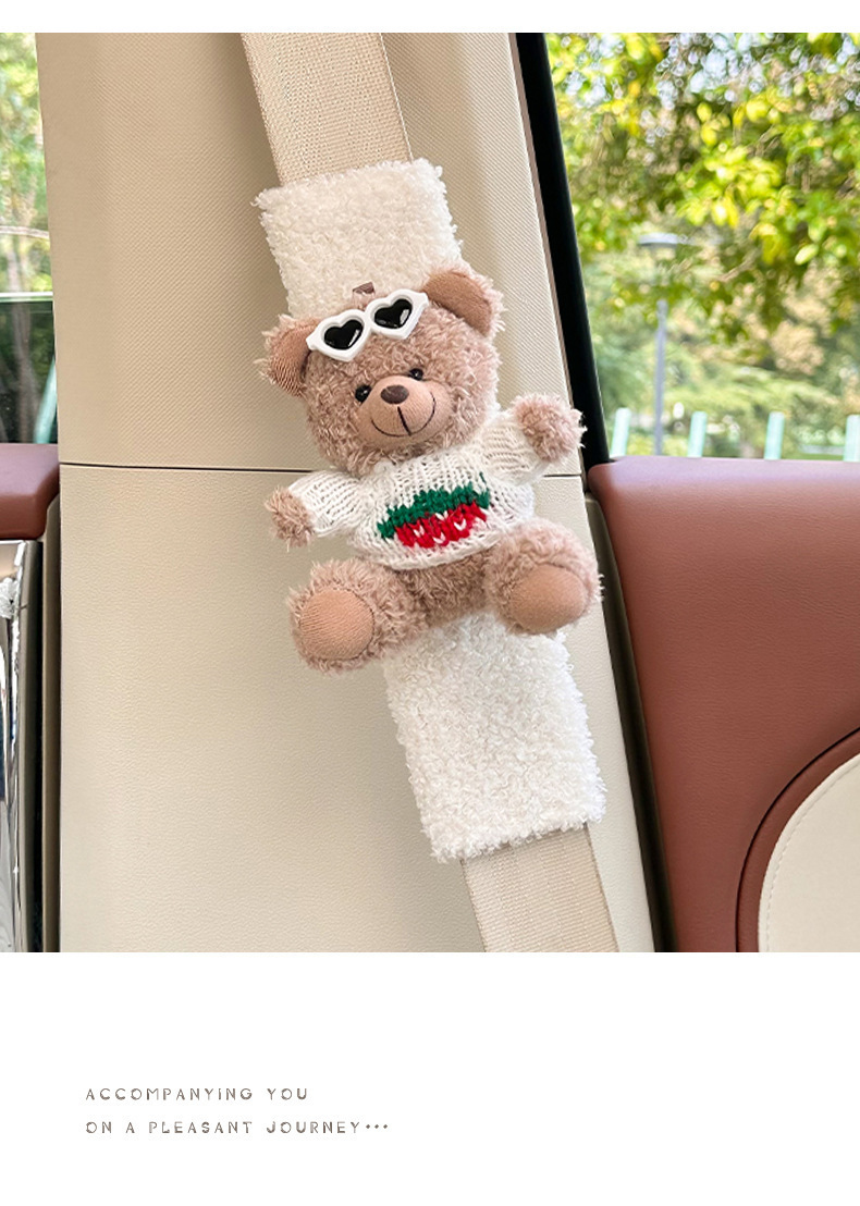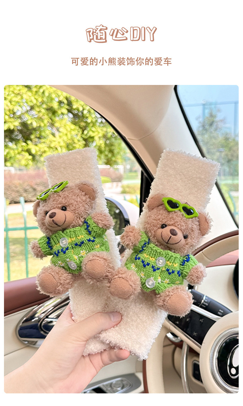 어깨 패드가있는 자동차 귀여운 플러시 만화 안티 스트레칭 보호 커버 DIY 장식 자동차 인테리어 용품 여성 폴리 에스터
