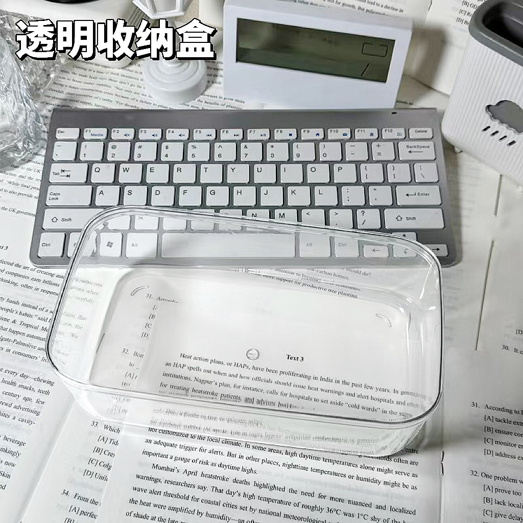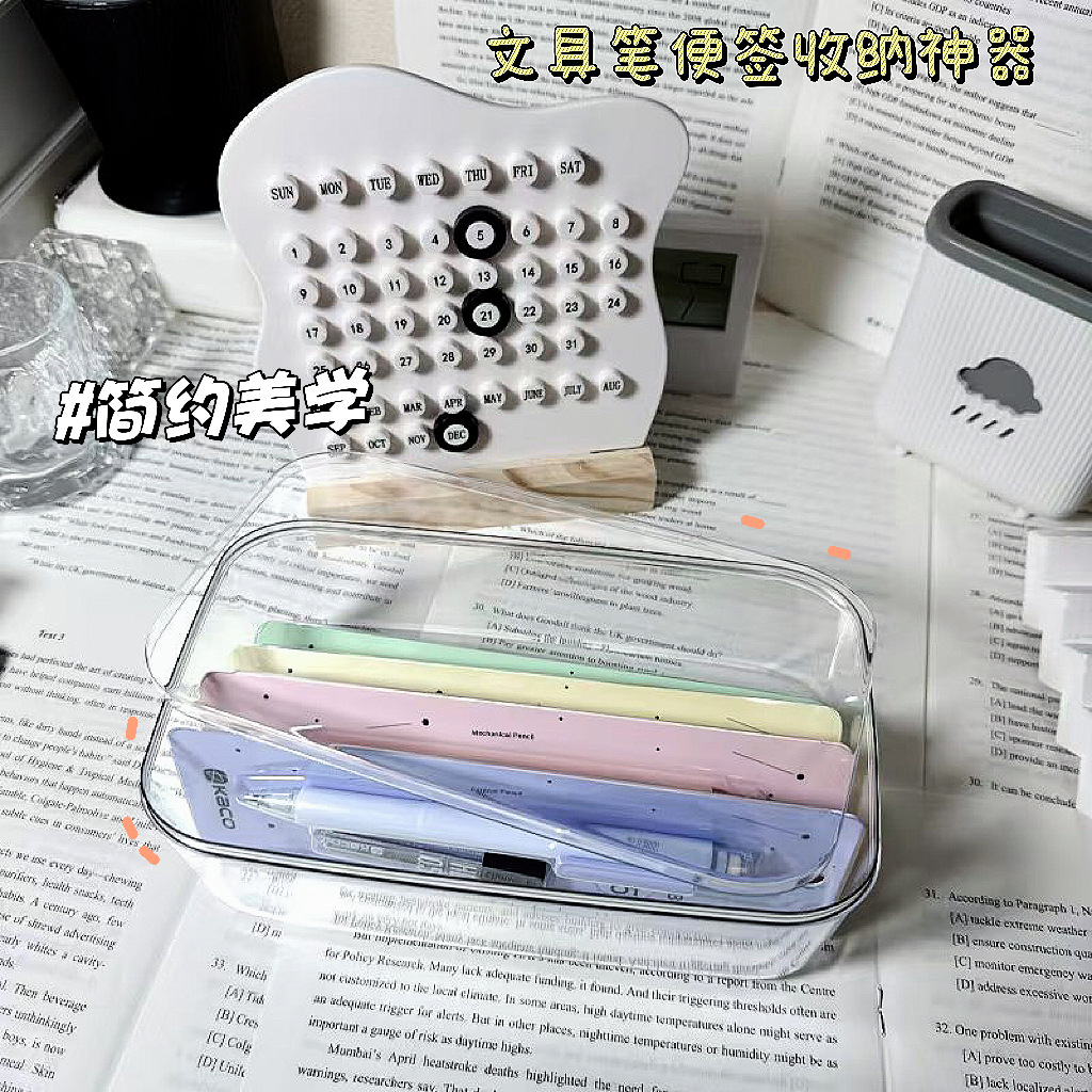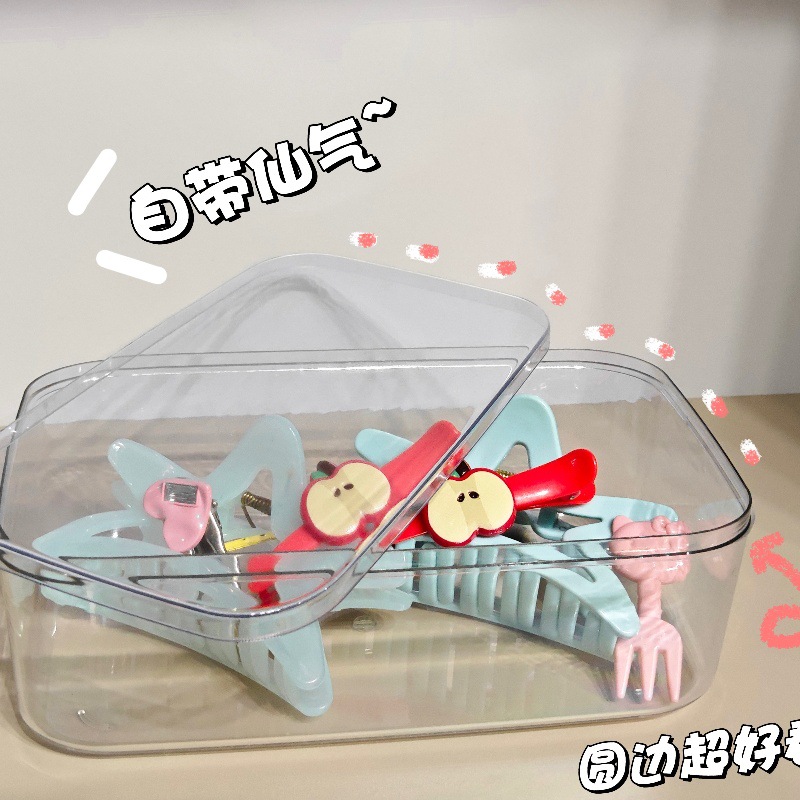 뚜껑이 있는 데스크탑 방진 책상 아크릴 문구 바구니 수납 선반 투명 수납 상자 서랍형 사무실 정리함