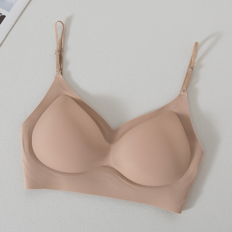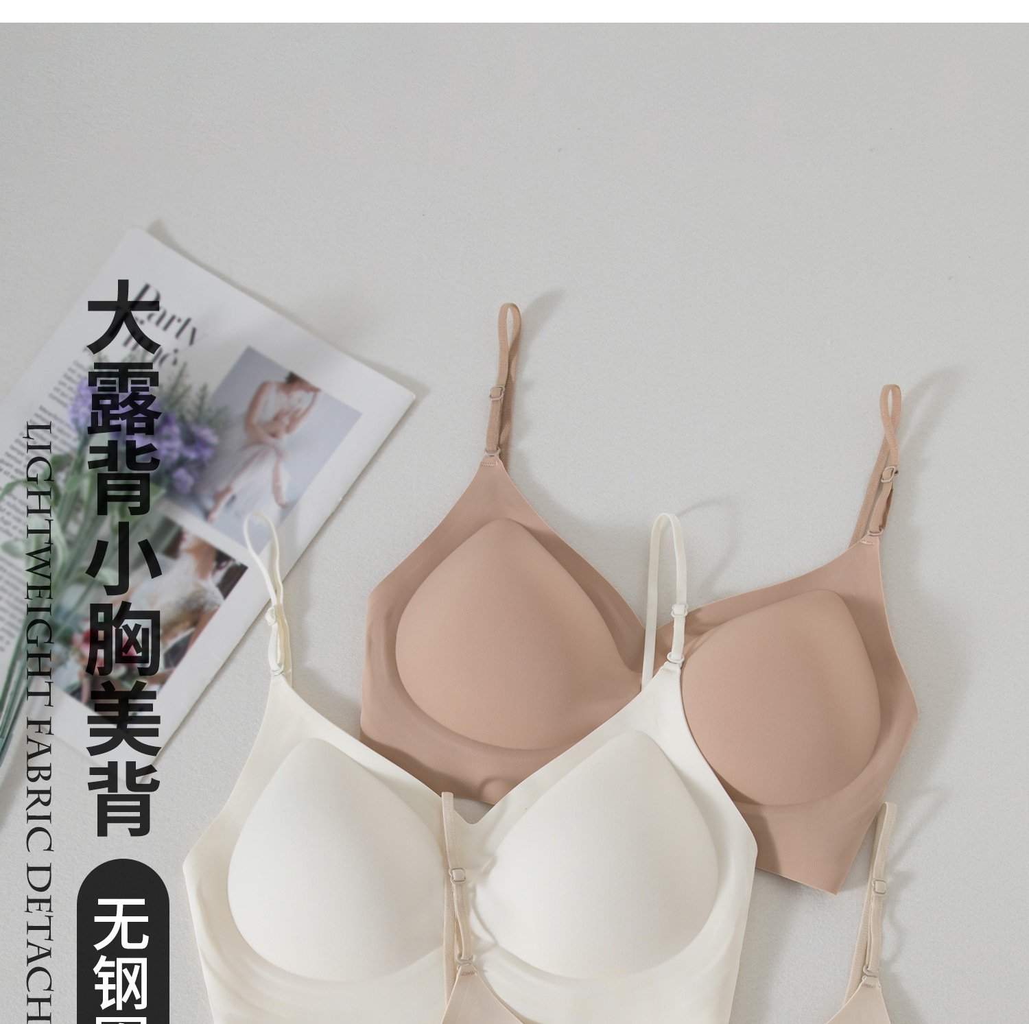 큰 U자형 노출형 등 보이지 않는 속옷, 무봉제 리퀴드 파운데이션, 작은 가슴을 두껍게 하고 푸쉬업하여 더 크게 보이게 하는 얇은 스트랩 여름 브라
