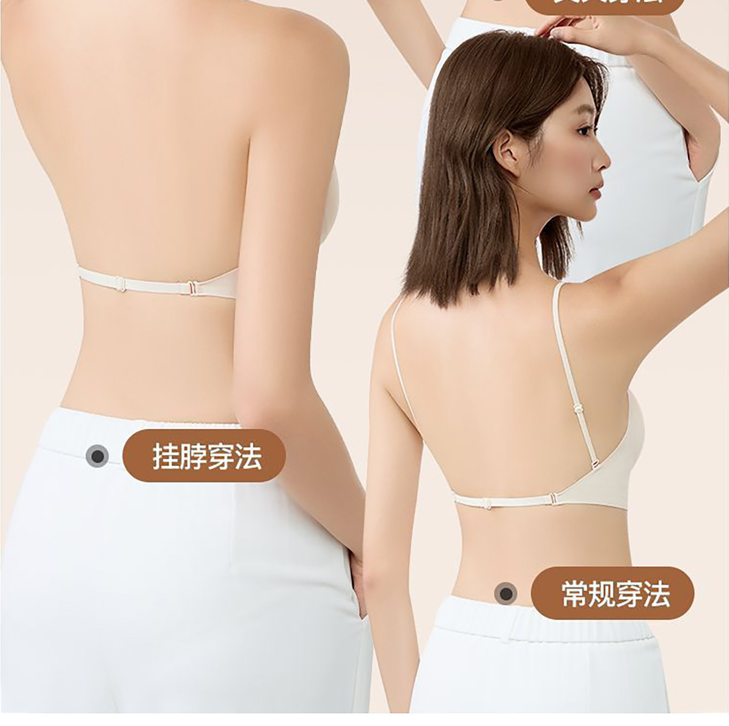 큰 U자형 노출형 등 보이지 않는 속옷, 무봉제 리퀴드 파운데이션, 작은 가슴을 두껍게 하고 푸쉬업하여 더 크게 보이게 하는 얇은 스트랩 여름 브라스토어 가기