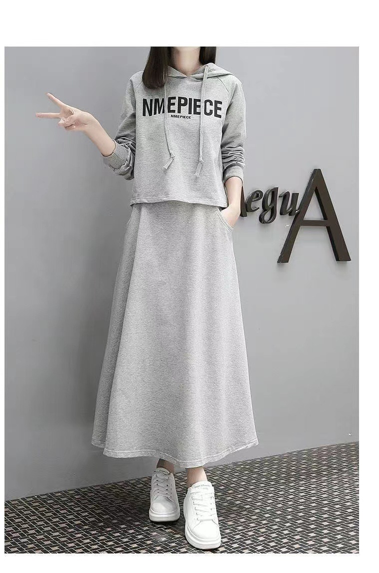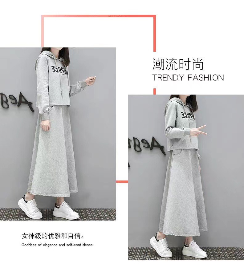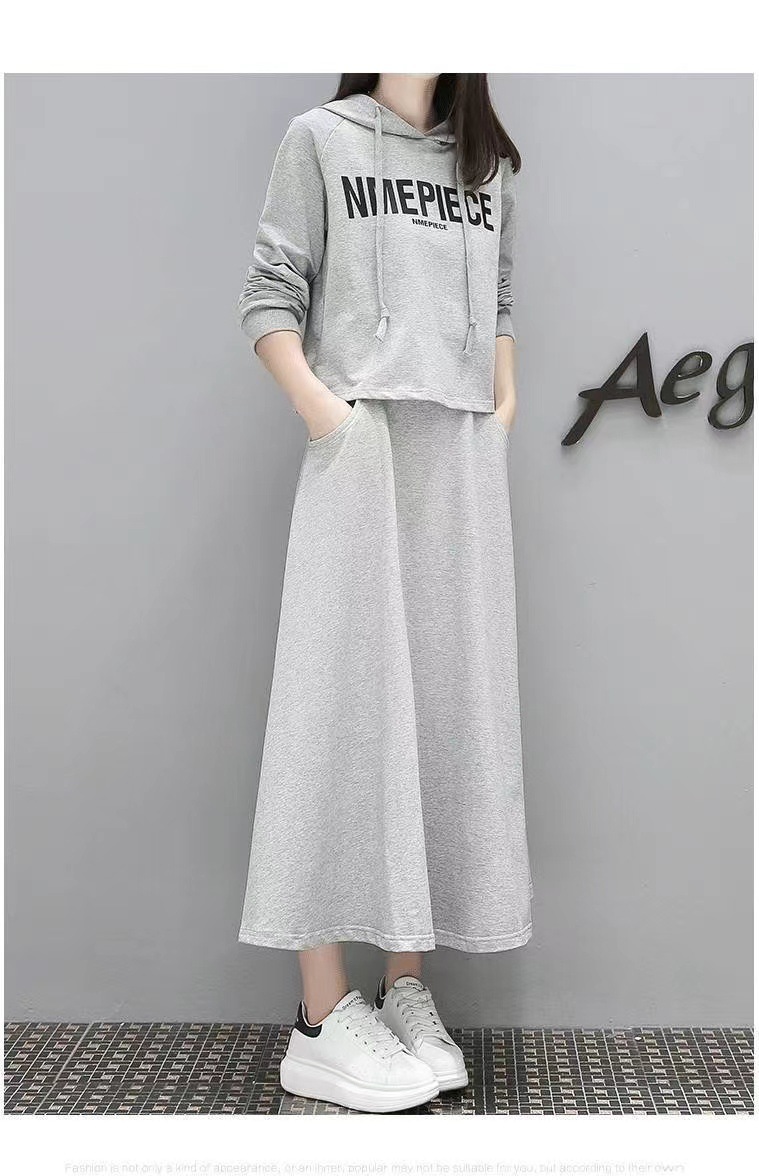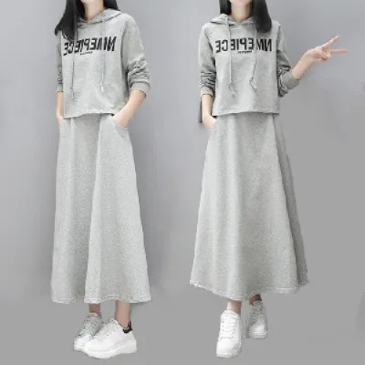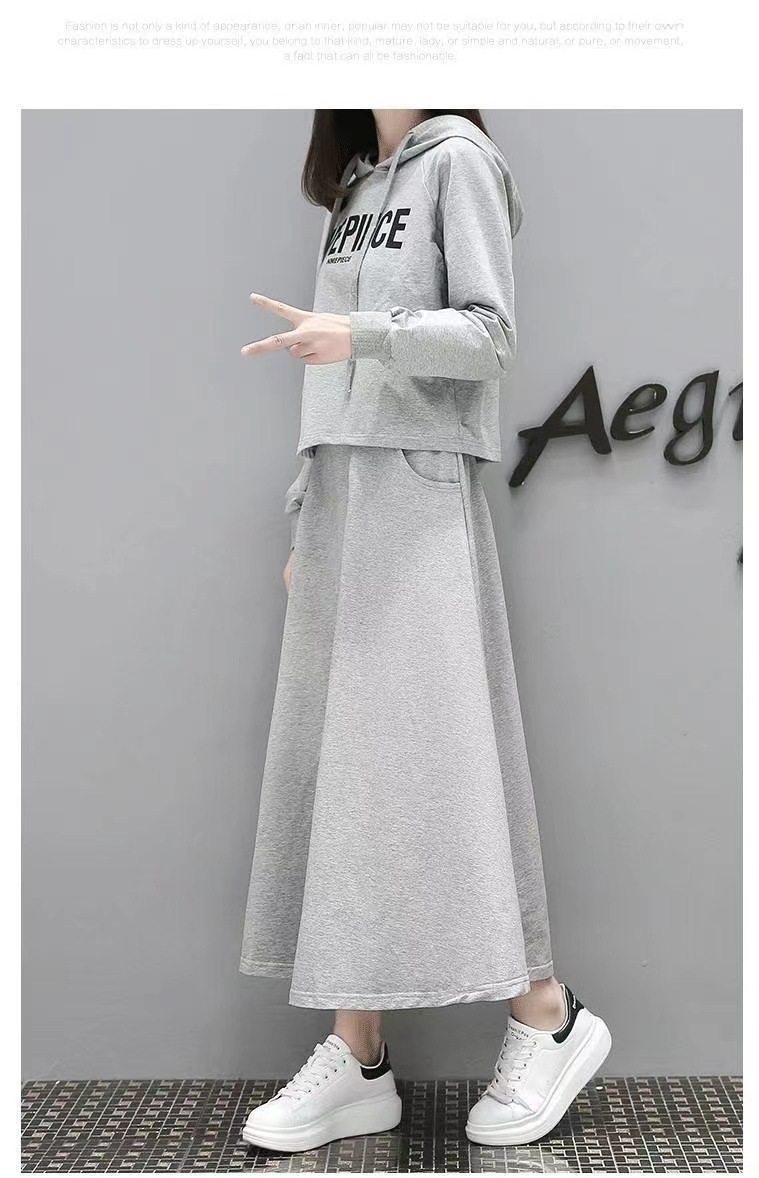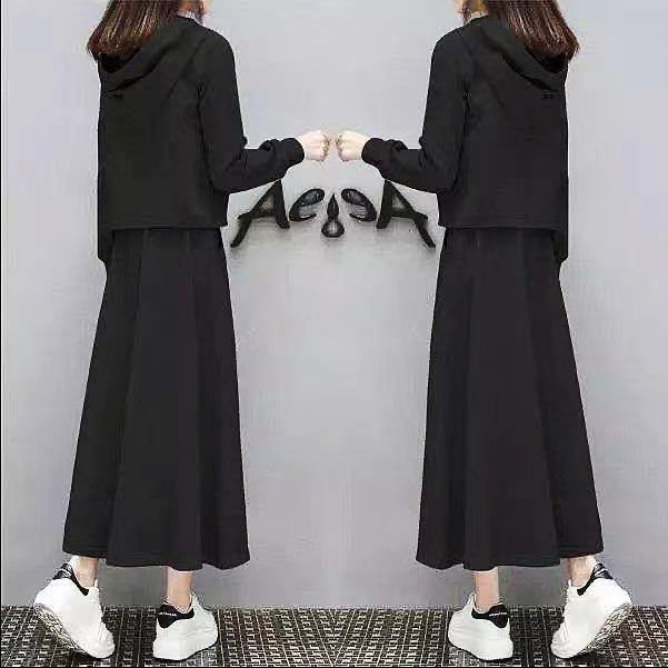 유럽 스테이션 봄과 가을 새로운 긴 스웨트 슈트 여성 스커트 캐주얼 한국 패션 세련된 투피스 세트 크로스보더스토어 가기